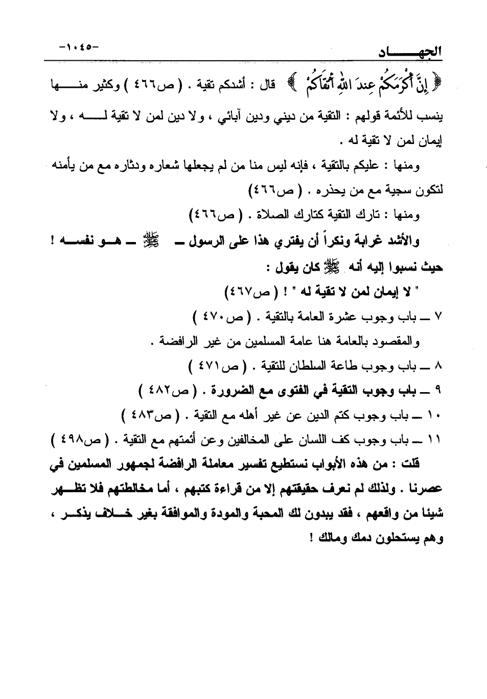 " لا إيمان لمن لا تقية له "! (ص467)