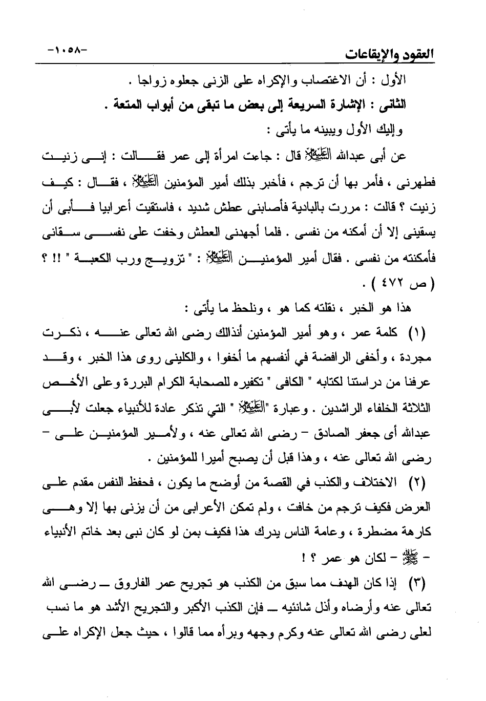 كلمة عمر، وهو أمير المؤمنين أنذالك رضي الله تعالى عنه، ذكرت مجردة، وأخفى الرافضة في أنفسهم ما أخفوا، والكليني روى هذا الخبر، وقد عرفنا من دراستنا لكتابه " الكافى " تكفيره للصحابة الكرام البررة وعلى الأخص الثلاثة الخلفاء الراشدين. وعبارة " - عليه السلام - " التي تذكر عادة للأنبياء جعلت لأبى عبد الله أي جعفر الصادق - رضي الله تعالى عنه، ولأمير المؤمنين على - رضي الله تعالى عنه، وهذا قبل أن يصبح أميرا للمؤمنين.