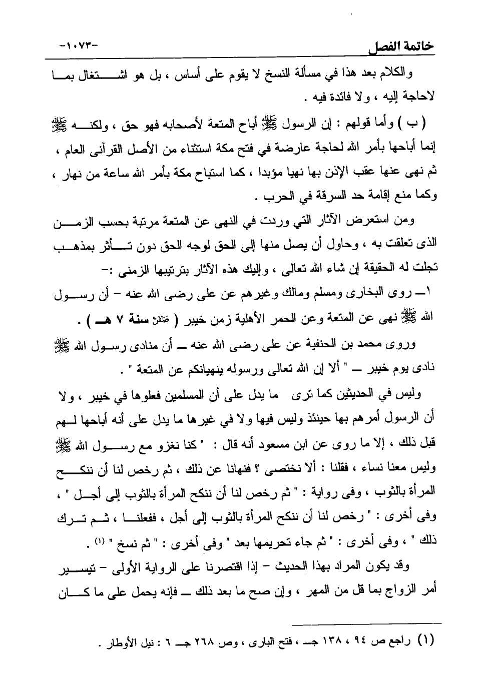 (¬1) راجع ص 94، 138 جـ، فتح البارى، وص 268 جـ 6: نيل الأوطار.