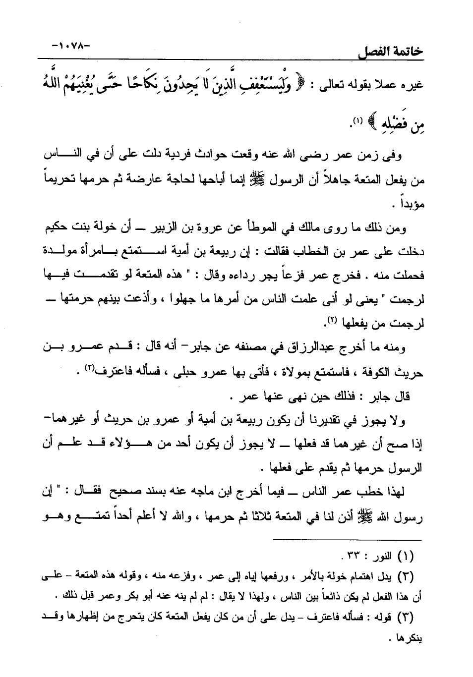 (¬2) يدل اهتمام خولة بالأمر، ورفعها إياه إلى عمر، وفزعه منه، وقوله هذه المتعة – على أن هذا الفعل لم يكن ذائعاً بين الناس، ولهذا لا يقال: لم لم ينه عنه أبو بكر وعمر قبل ذلك.