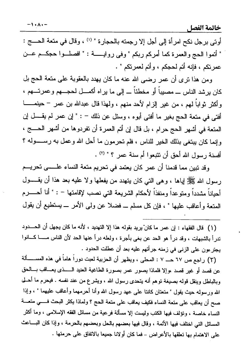 (¬2) راجع ص 67 حـ 7: المحلى، ويظهر أن الحزبية لعبت دوراً هاماً في هذه المسألة عن قصد أو غير قصد، وإلا فلماذا يصور عمر بصورة الطاغية العنيد الذى يعاقب بالحق وبالباطل وينقل قوله بصيغة توهم أنه يتحدى رسول الله، ويشرع من عند نفسه. فيحرم ما أحل الله ورسوله حيث يقول " متعتان كانتا على عهد رسول الله وأنا أحرمهما وأعاقب عليهما "، وإذا صح أن يعاقب على متعة النساء فكيف يعاقب على متعة الحج؟ ولماذا يكثر البحث في متعة النساء خاصة، وتؤلف فيها الكتب وليست إلا مسألة فرعية من مسائل الفقه الإسلامي، وما أكثر المسائل التي اختلف فيها الأئمة، وقال فيها بعضهم بالحل وبعضهم بالحرمة، وإذا كان الباعث على الاهتمام بها تعلقها بالأعراض - فما كان أولانا جميعا بالاتفاق على حرمتها