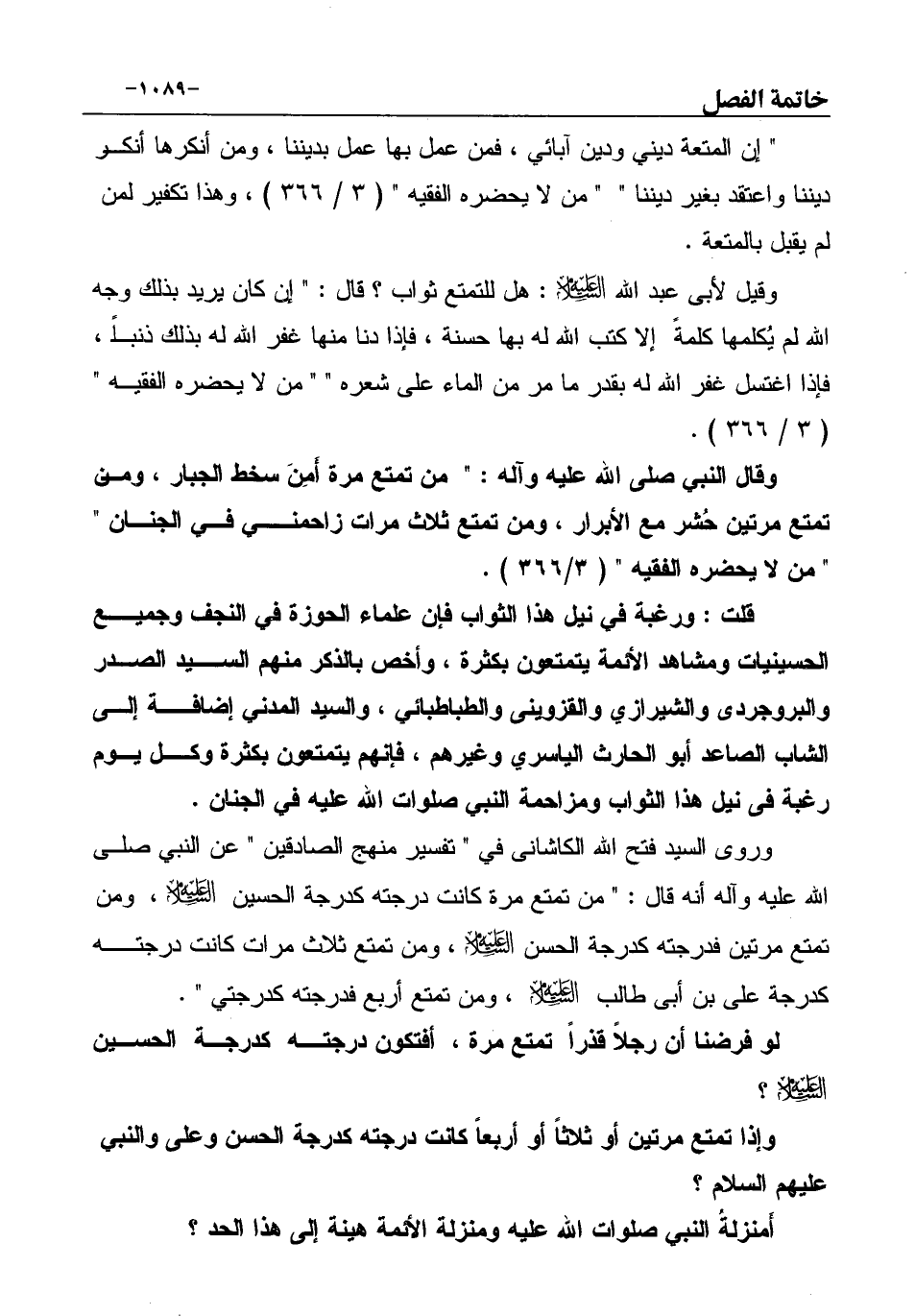 إن المتعة ديني ودين آبائي، فمن عمل بها عمل بديننا، ومن أنكرها أنكر ديننا واعتقد بغير ديننا " " من لا يحضره الفقيه " (3 / 366) ، وهذا تكفير لمن لم يقبل بالمتعة.