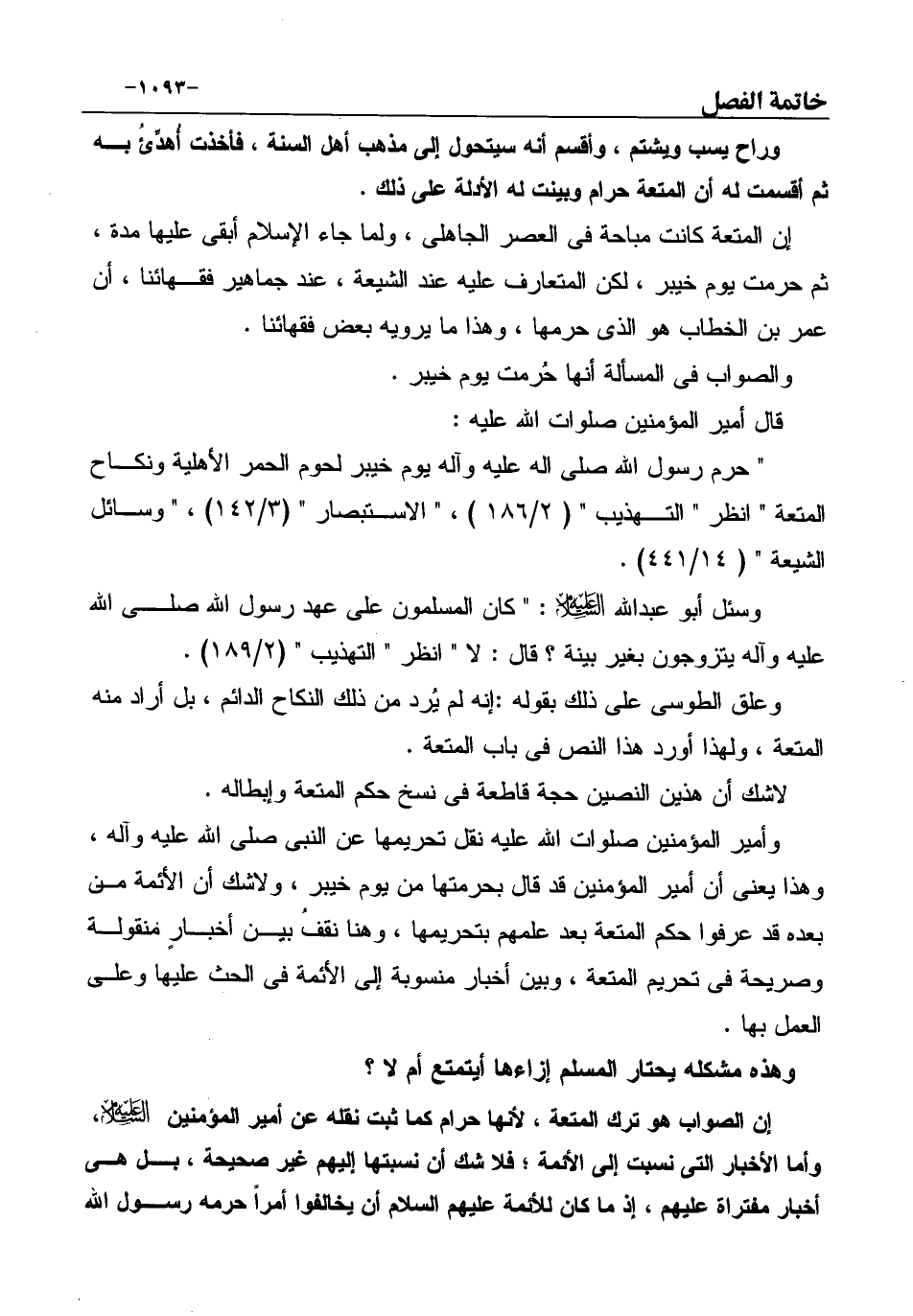وعلق الطوسى على ذلك بقوله: إنه لم يُرد من ذلك النكاح الدائم، بل أراد منه المتعة، ولهذا أورد هذا النص فى باب المتعة. لاشك أن هذين النصين حجة قاطعة فى نسخ حكم المتعة وإبطاله.