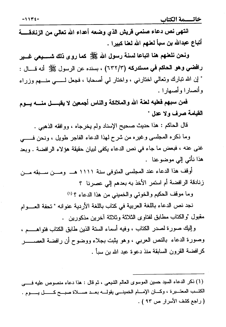 وإليك صورة لصدر الكتاب، وفيه أسماء الستة الذين طابق الكتاب فتواهم، وصورة الدعاء بالنص العربي، وهو يثبت بجلاء ووضوح أن رافضة العصر كرافضة القرون السابقة منذ دعوة عبد الله بن سبأ.