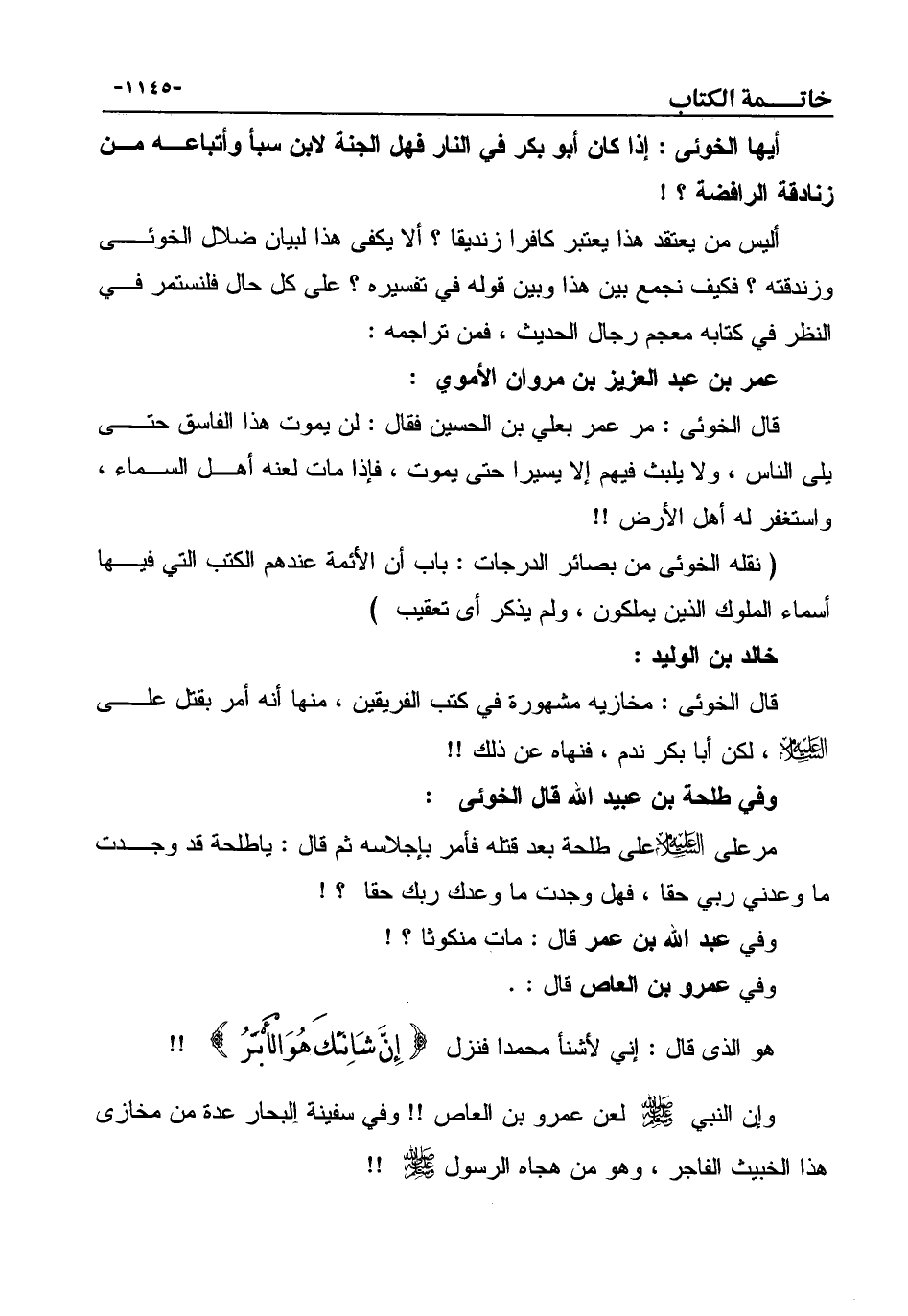 أيها الخوئى: إذا كان أبو بكر في النار فهل الجنة لابن سبأ وأتباعه من زنادقة الرافضة؟ !