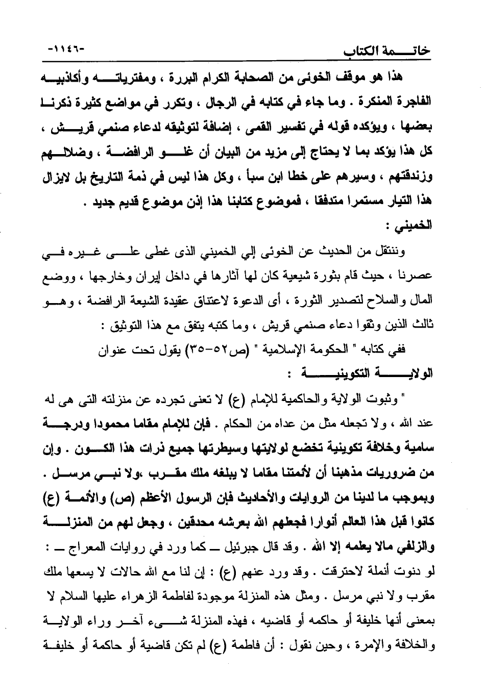 ففي كتابه " الحكومة الإسلامية " (ص52-35) يقول تحت عنوان
