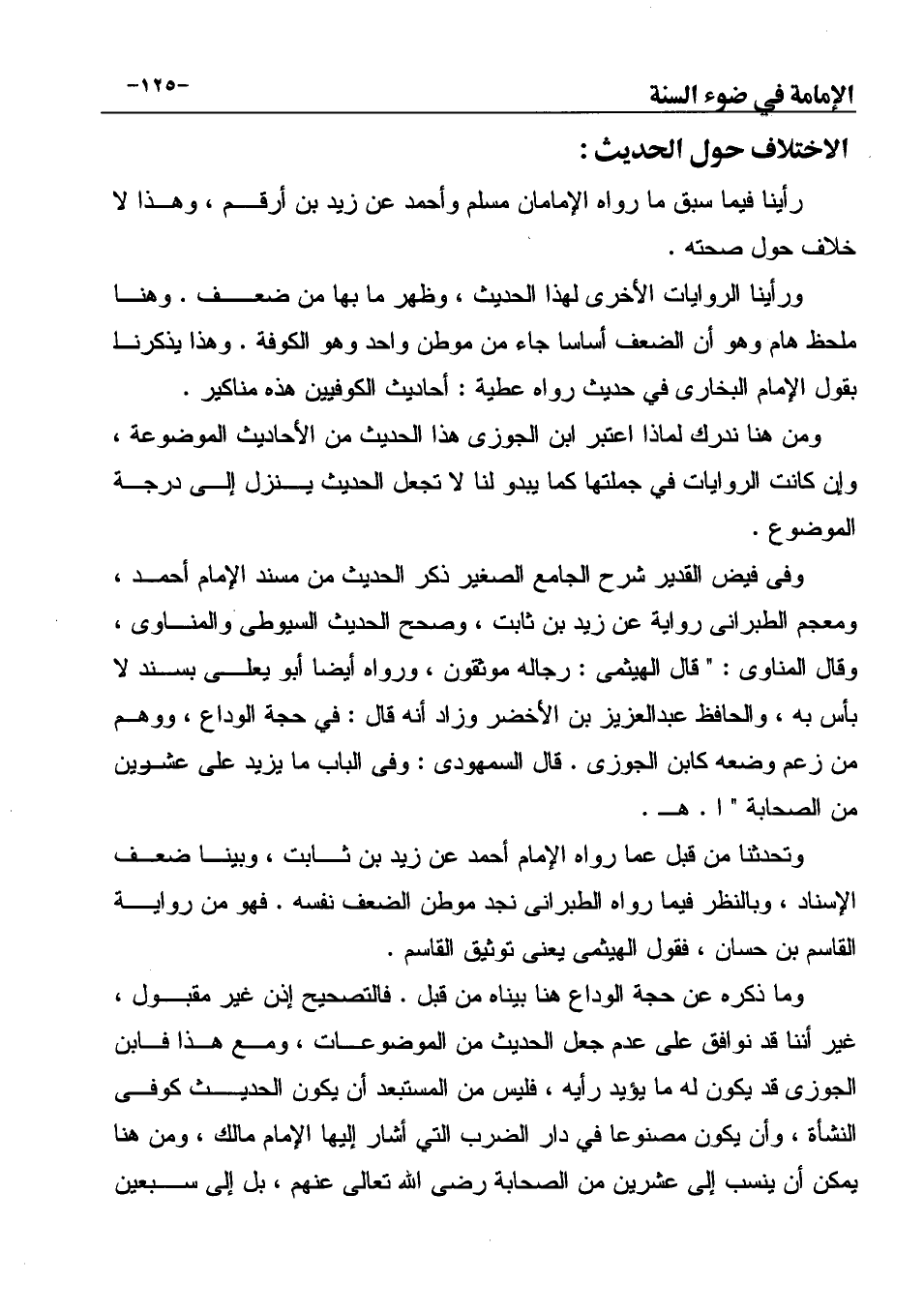 وما ذكره عن حجة الوداع هنا بيناه من قبل. فالتصحيح إذن غير مقبول، غير أننا قد نوافق على عدم جعل الحديث من الموضوعات، ومع هذا فابن الجوزي قد يكون له ما يؤيد رأيه، فليس من المستبعد أن يكون الحديث كوفى النشأة، وأن يكون مصنوعاً في دار الضرب التي أشار إليها الإمام مالك، ومن هنا يمكن أن ينسب إلى عشرين من الصحابة رضي الله تعالى عنهم، بل إلى سبعين