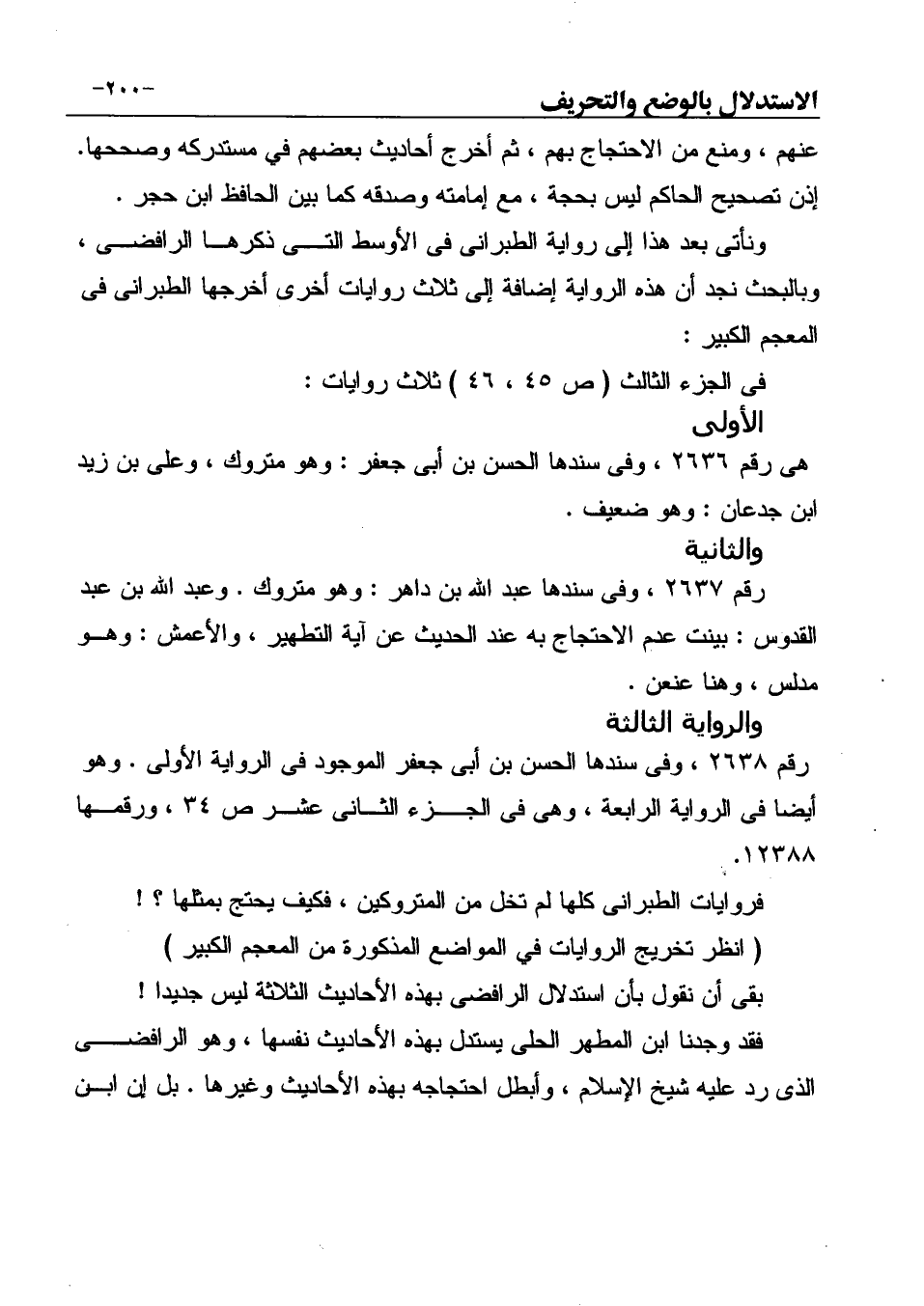 فروايات الطبرانى كلها لم تخل من المتروكين، فكيف يحتج بمثلها؟ ! (انظر تخريج الروايات في المواضع المذكورة من المعجم الكبير) بقى أن نقول بأن استدلال الرافضي بهذه الأحاديث الثلاثة ليس جديدا!