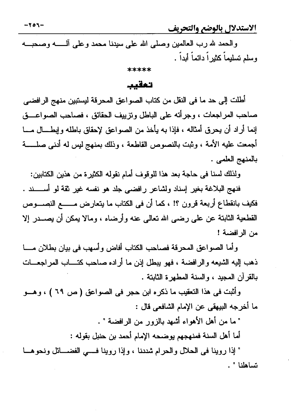 وأما الصواعق المحرقة فصاحب الكتاب أفاض وأسهب في بيان بطلان ما ذهب إليه الشيعه والرافضة، فهو يبطل إذن ما أراده صاحب كتاب المراجعات بالقرآن المجيد، والسنة المطهرة الثابتة.