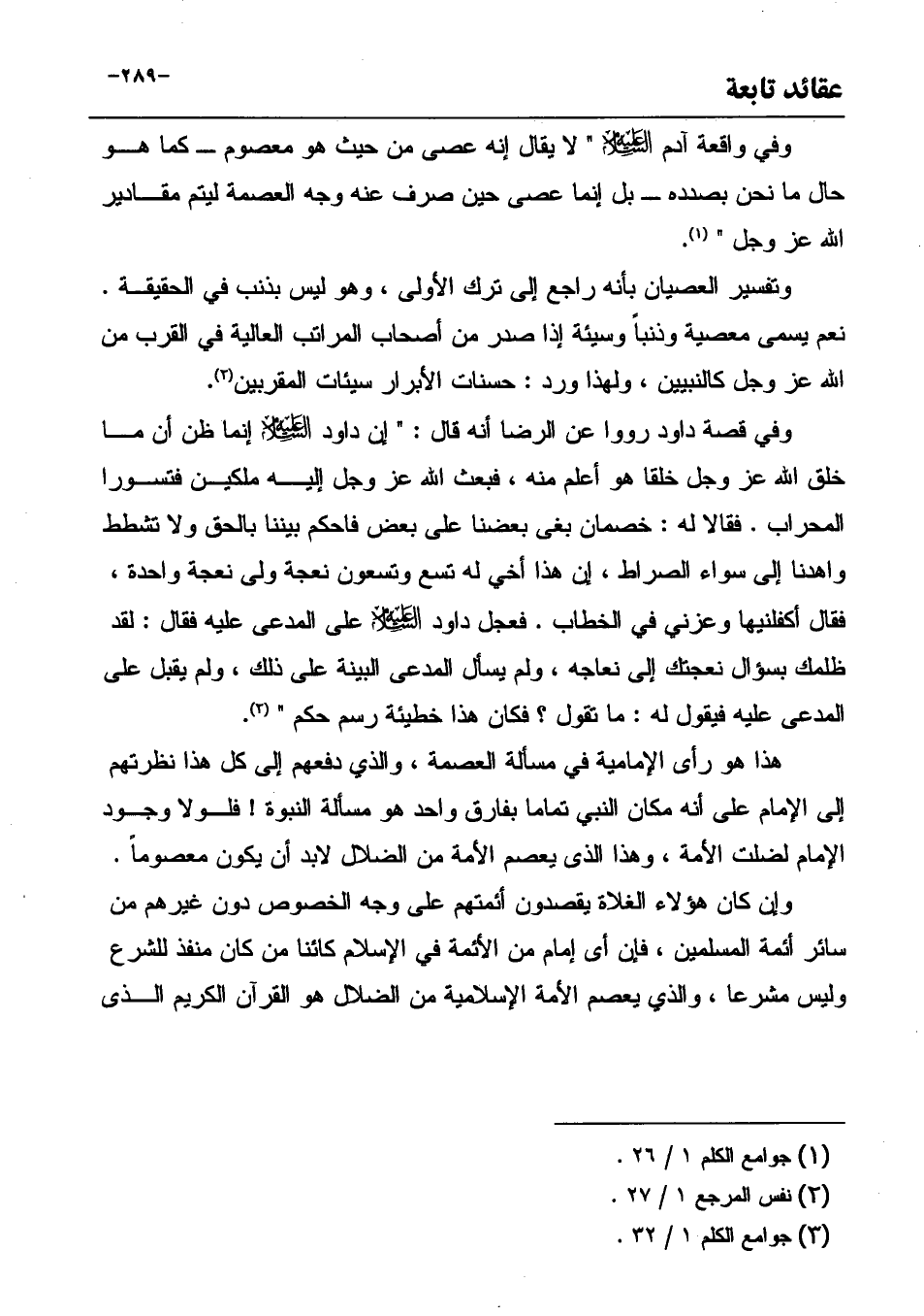وتفسير العصيان بأنه راجع إلى ترك الأولى، وهو ليس بذنب في الحقيقة. نعم يسمى معصية وذنباً وسيئة إذا صدر من أصحاب المراتب العالية في القرب من الله عز وجل كالنبيين، ولهذا ورد: حسنات الأبرار سيئات المقربين (¬2) .