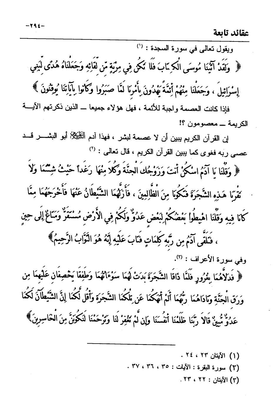 ويقول تعالى في سورة السجدة: (¬1) " وَلَقَدْ آتَيْنَا مُوسَى الْكِتَابَ فَلَا تَكُن فِي مِرْيَةٍ مِّن لِّقَائِهِ وَجَعَلْنَاهُ هُدًى لِّبَنِي إِسْرَائِيلَ، وَجَعَلْنَا مِنْهُمْ أَئِمَّةً يَهْدُونَ بِأَمْرِنَا لَمَّا صَبَرُوا وَكَانُوا بِآيَاتِنَا يُوقِنُونَ "