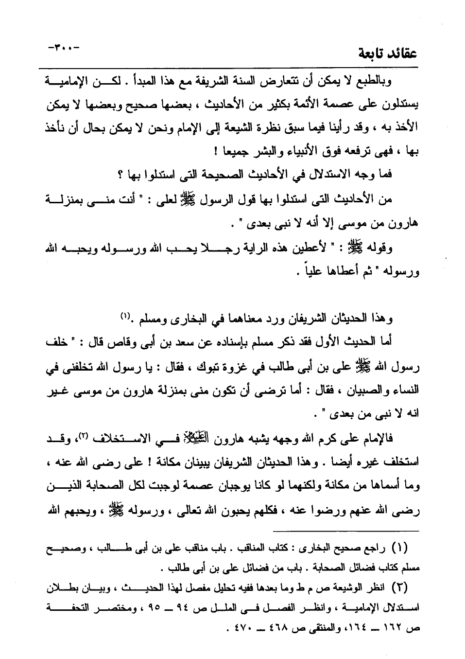 (¬2) انظر الوشيعة ص م ط وما بعدها ففيه تحليل مفصل لهذا الحديث، وبيان بطلان استدلال الإمامية، وانظر الفصل في الملل ص 94 ـ 95، ومختصر التحفة ص 162 ـ 164، والمنتقى ص 468 ـ 470.