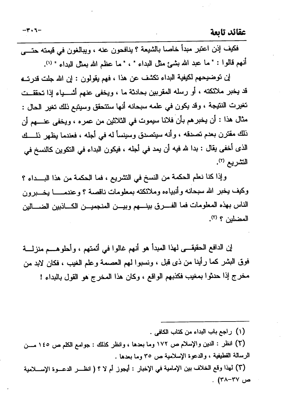 فكيف إذن اُعتبر مبدأ خاصا بالشيعة؟ ينافحون عنه، ويبالغون في قيمته حتى أنهم قالوا: " ما عبد الله بشئ مثل البداء "، " ما عظم الله بمثل البداء " (¬1) .