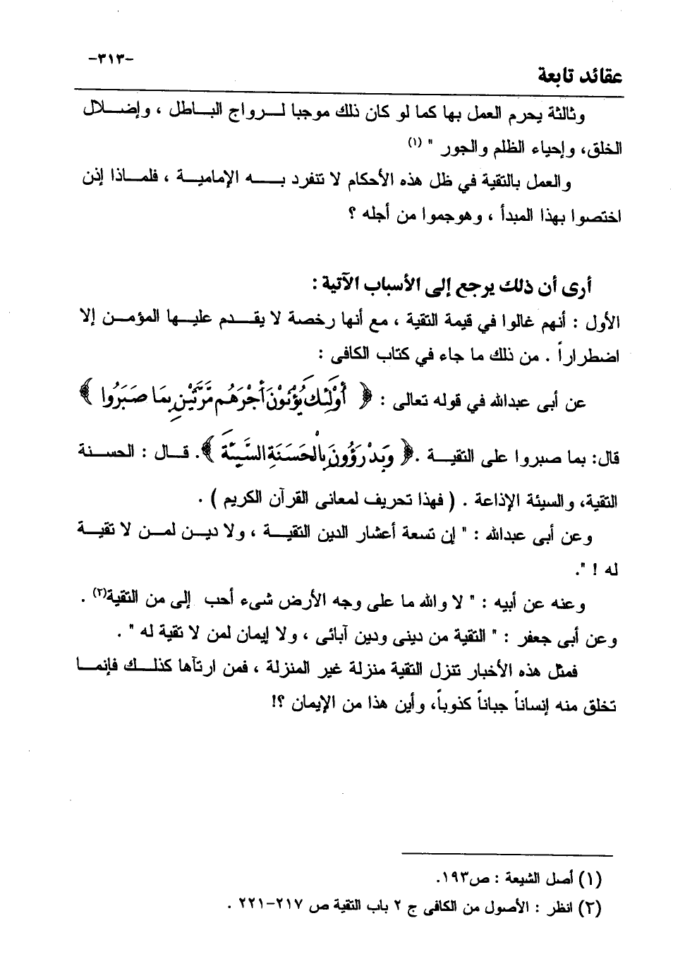 (¬2) انظر: الأصول من الكافى ج 2 باب التقية ص 217-221.