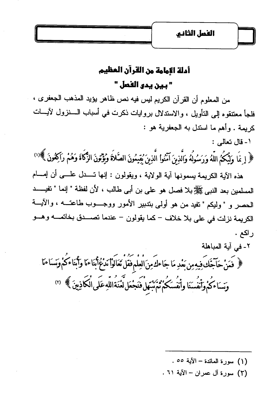 " فَمَنْ حَآجَّكَ فِيهِ مِن بَعْدِ مَا جَاءكَ مِنَ الْعِلْمِ فَقُلْ تَعَالَوْاْ نَدْعُ أَبْنَاءنَا وَأَبْنَاءكُمْ وَنِسَاءنَا وَنِسَاءكُمْ وَأَنفُسَنَا وأَنفُسَكُمْ ثُمَّ نَبْتَهِلْ فَنَجْعَل لَّعْنَةُ اللهِ عَلَى الْكَاذِبِينَ " (¬2)