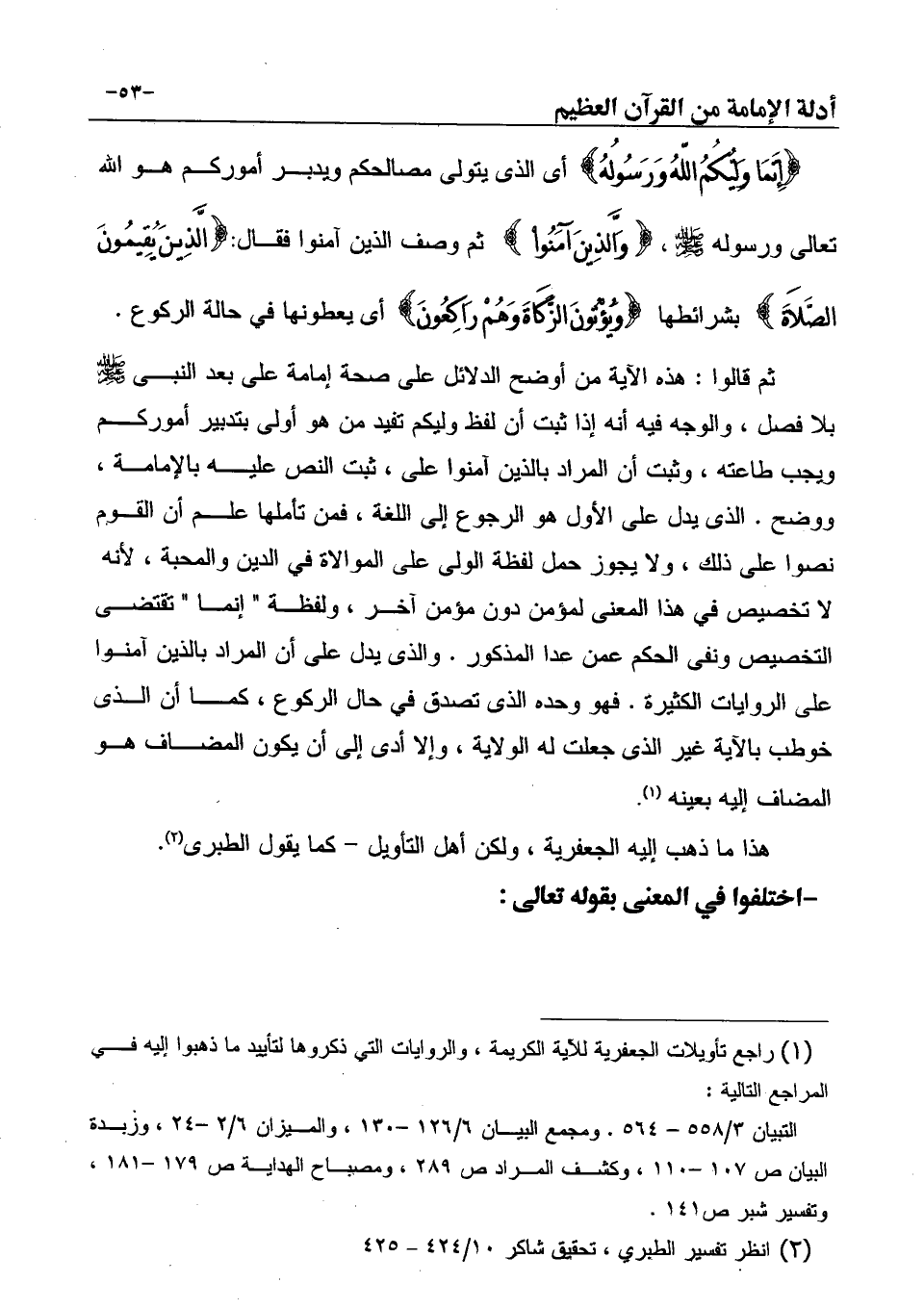 (¬1) راجع تأويلات الجعفرية للآية الكريمة، والروايات التي ذكروها لتأييد ما ذهبوا إليه في المراجع التالية: التبيان 3/558 - 564. ومجمع البيان 6/126 -130، والميزان 6/2 -24، وزبدة البيان ص 107 -110، وكشف المراد ص 289، ومصباح الهداية ص 179 -181، وتفسير شبر ص141
