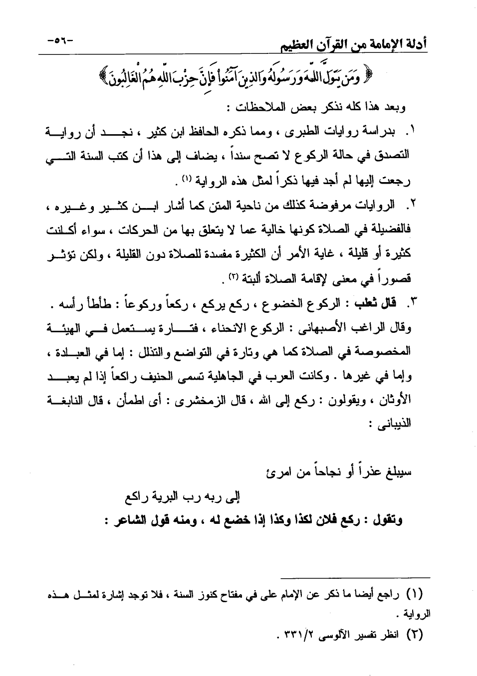 بدراسة روايات الطبري، ومما ذكره الحافظ ابن كثير، نجد أن رواية التصدق في حالة الركوع لا تصح سنداً، يضاف إلى هذا أن كتب السنة التي رجعت إليها لم أجد فيها ذكراً لمثل هذه الرواية (¬1) .