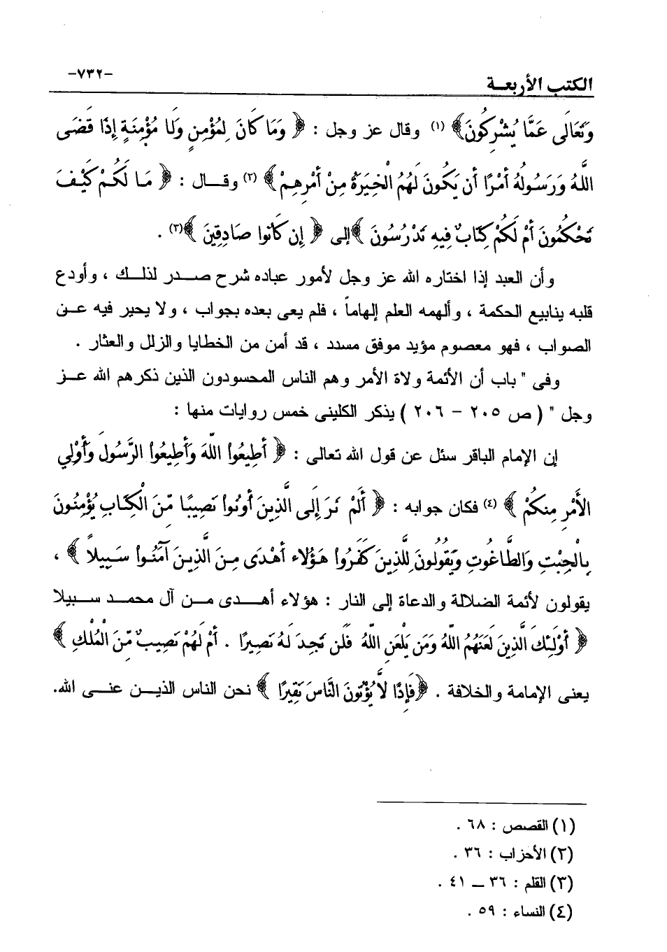 وفى " باب أن الأئمة ولاة الأمر وهم الناس المحسودون الذين ذكرهم الله عز وجل " (ص 205 - 206) يذكر الكلينى خمس روايات منها: