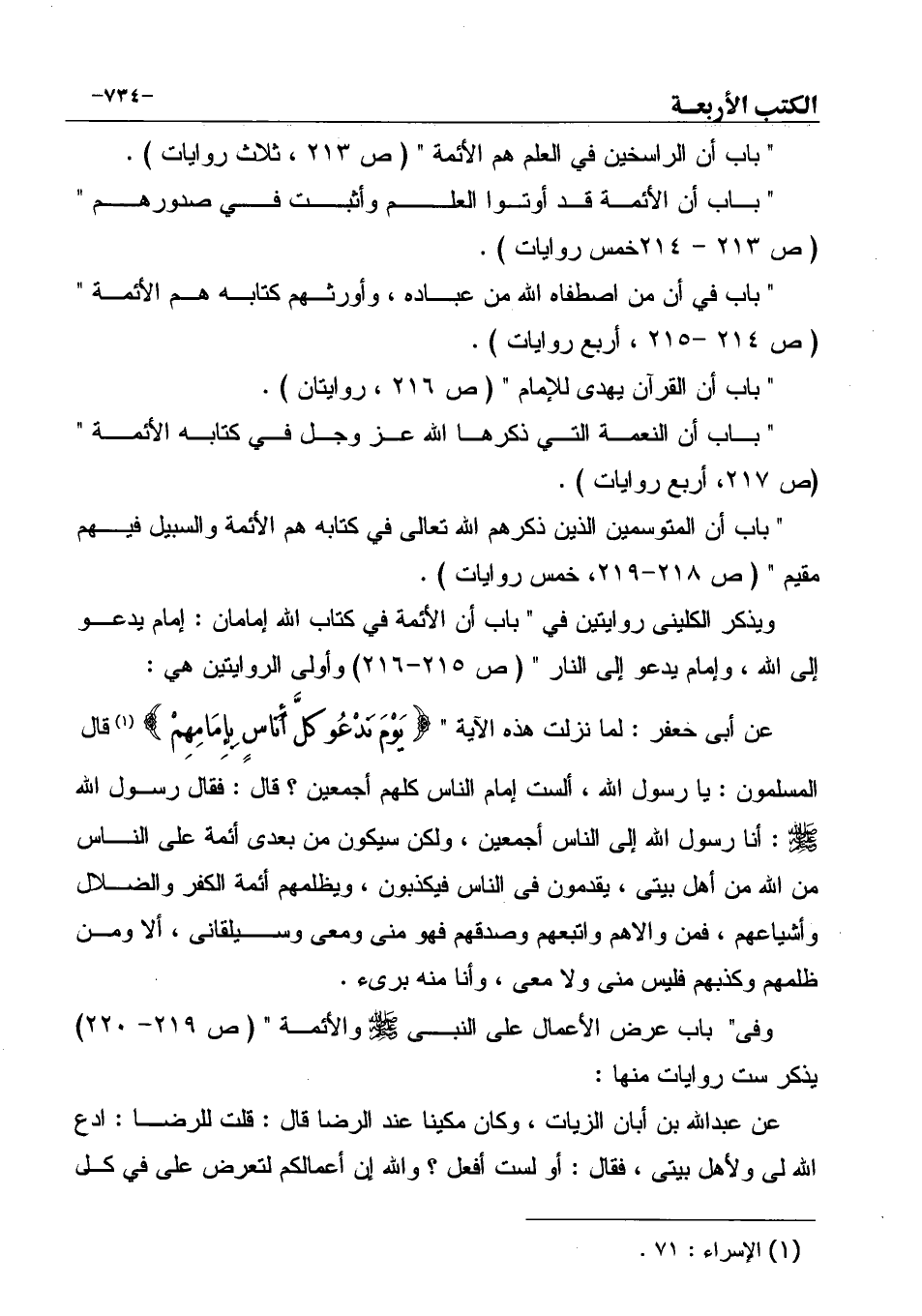 " باب في أن من اصطفاه الله من عباده، وأورثهم كتابه هم الأئمة " (ص 214 -215، أربع روايات) .