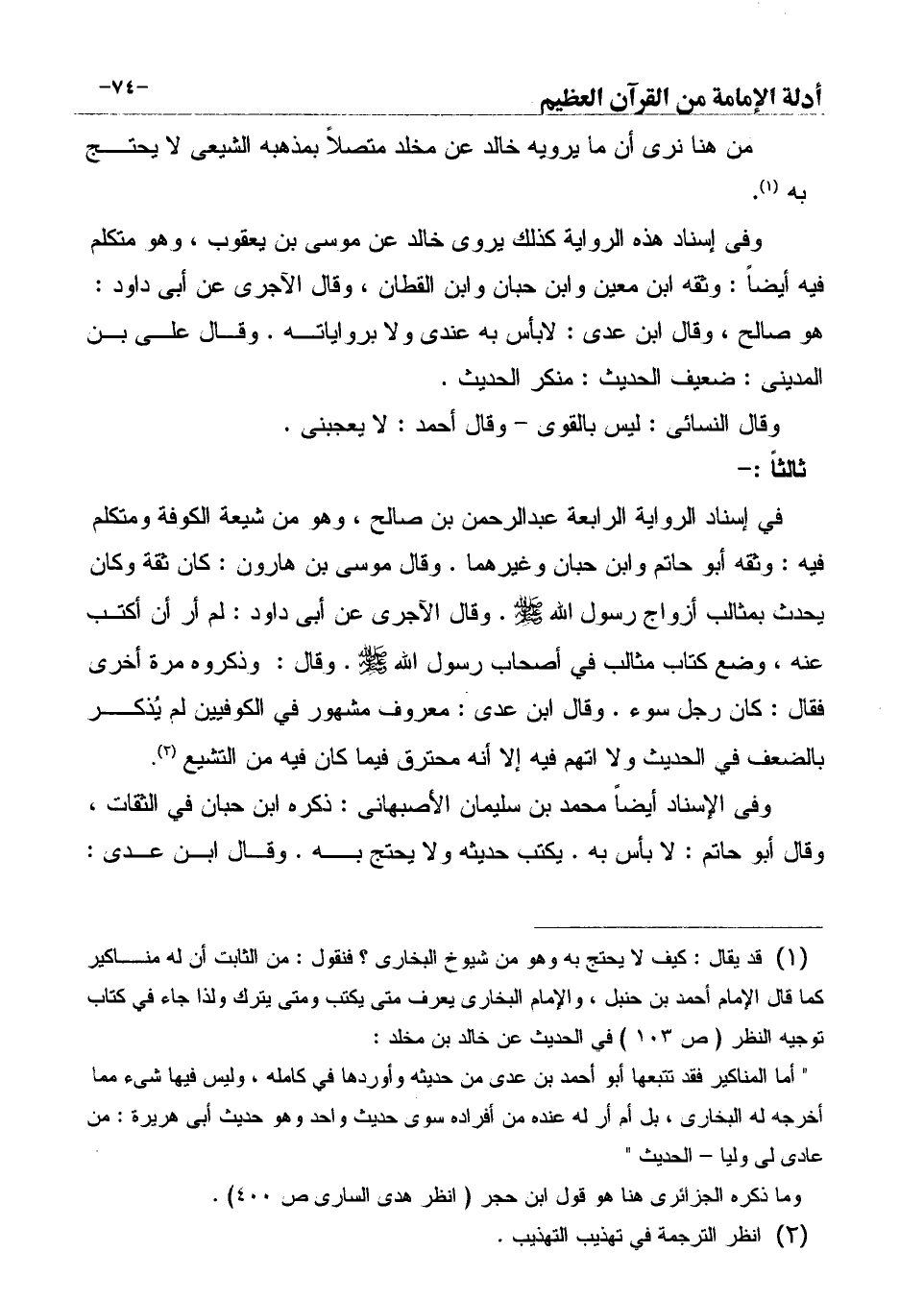 من هنا نرى أن ما يرويه خالد عن مخلد متصلاً بمذهبه الشيعي لا يحتج به (¬1) .