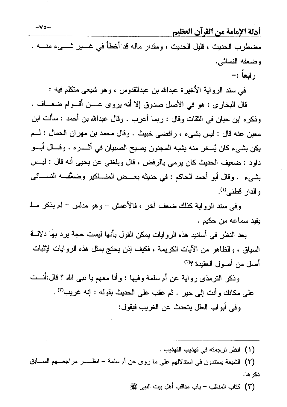 (¬2) الشيعة يستندون في استدلالهم على ما روى عن أم سلمة – انظر مراجعهم السابق ذكرها.