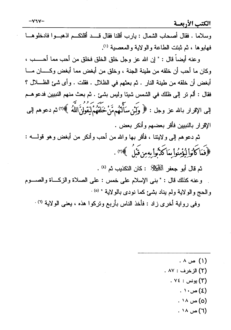 وعنه كذلك قال: " بنى الإسلام على خمس: على الصلاة والزكاة والصوم والحج والولاية ولم يناد بشئ كما نودى بالولاية " (¬5) .