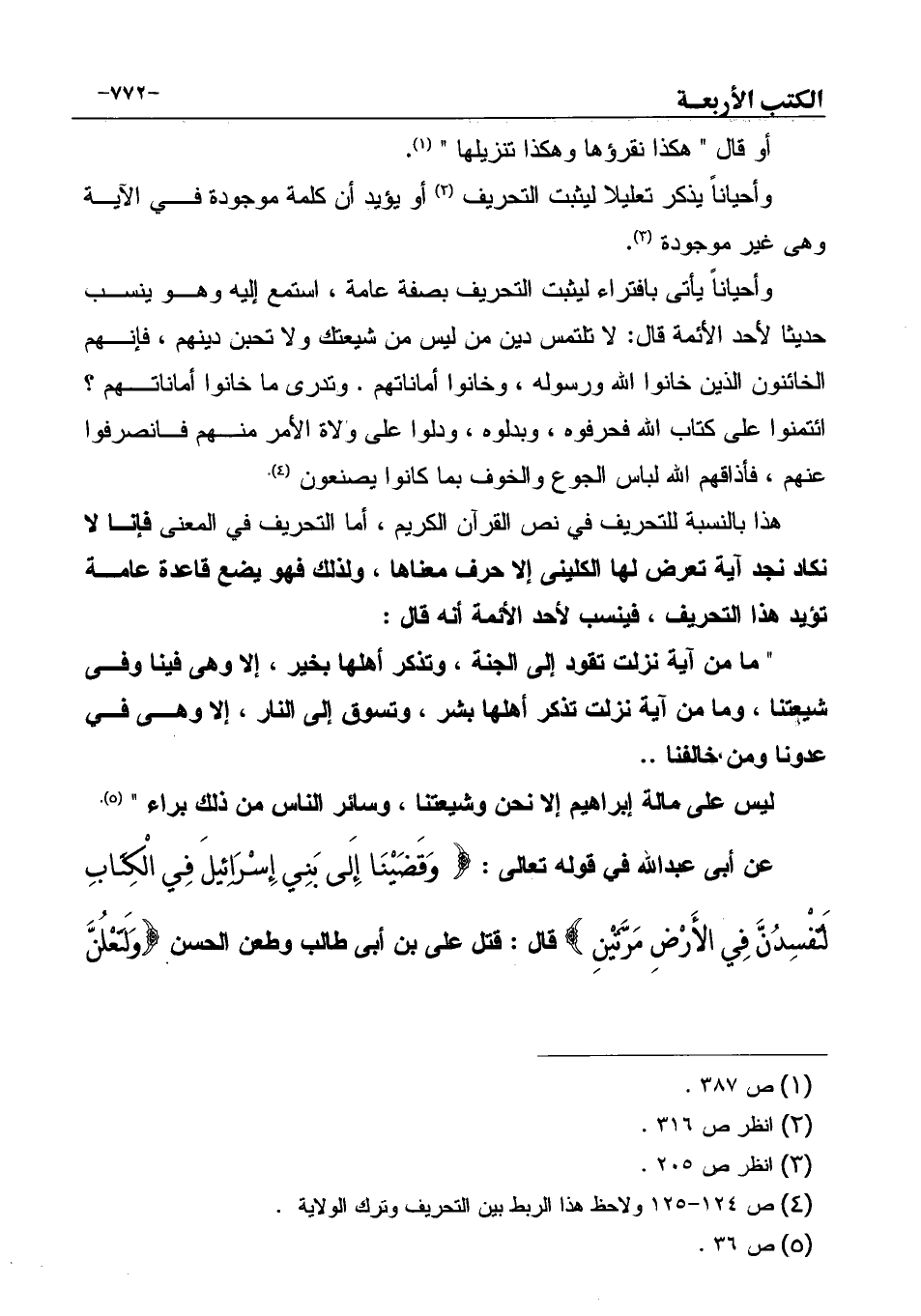(¬4) ص 124-125 ولاحظ هذا الربط بين التحريف وترك الولاية.