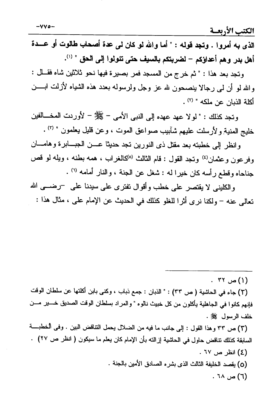 (¬3) ص 33 وهذا القول: إلى جانب ما فيه من الضلال يحمل التناقض البين. وفى الخطبة السابقة كذلك تناقض حاول في الحاشية إزالته بأن الإمام كان يعلم ما سيكون (انظر ص 27) .