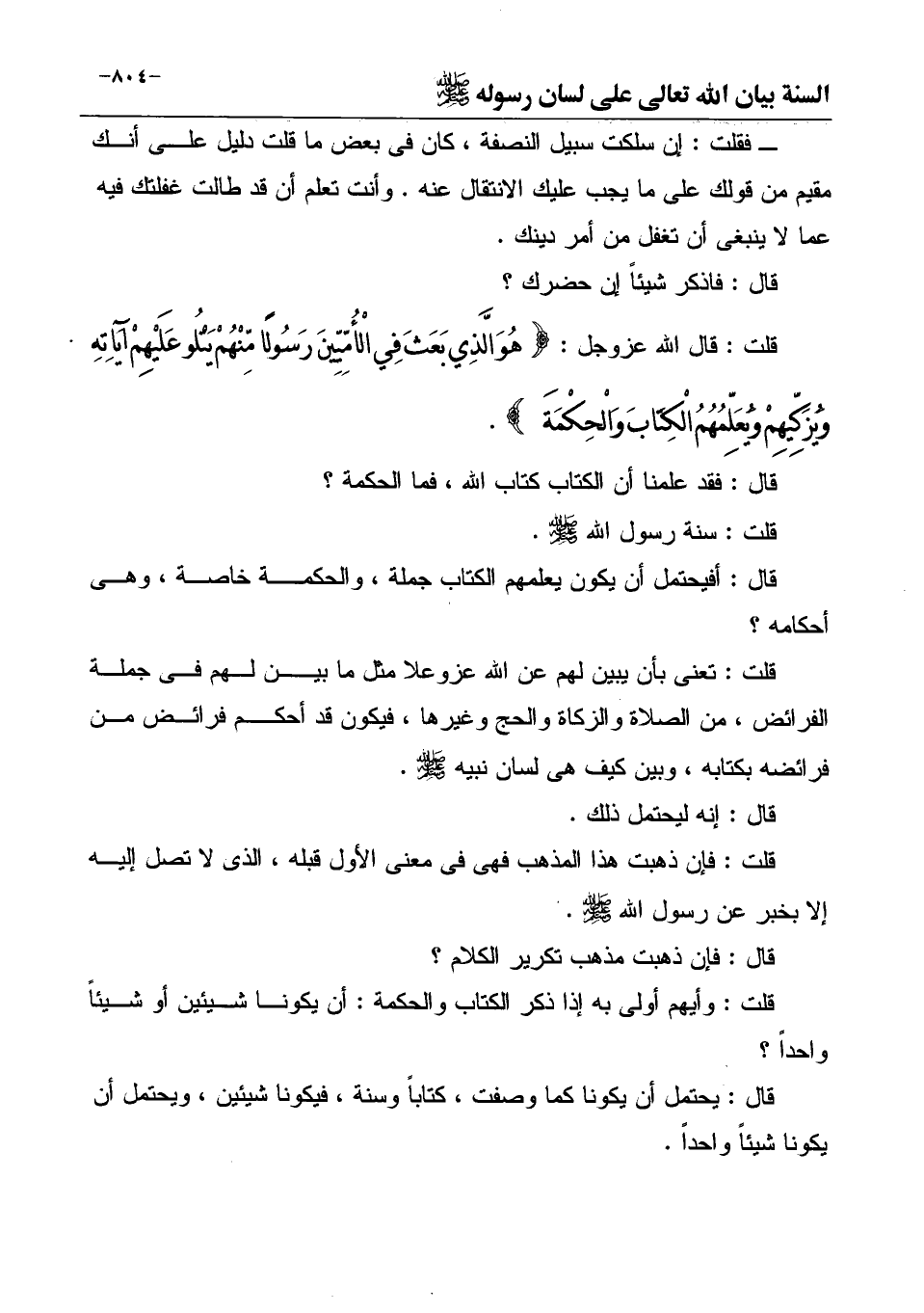 قلت: قال الله عزوجل: {هُوَ الَّذِي بَعَثَ فِي الْأُمِّيِّينَ رَسُولًا مِّنْهُمْ يَتْلُو عَلَيْهِمْ آيَاتِهِ وَيُزَكِّيهِمْ وَيُعَلِّمُهُمُ الْكِتَابَ وَالْحِكْمَةَ} .