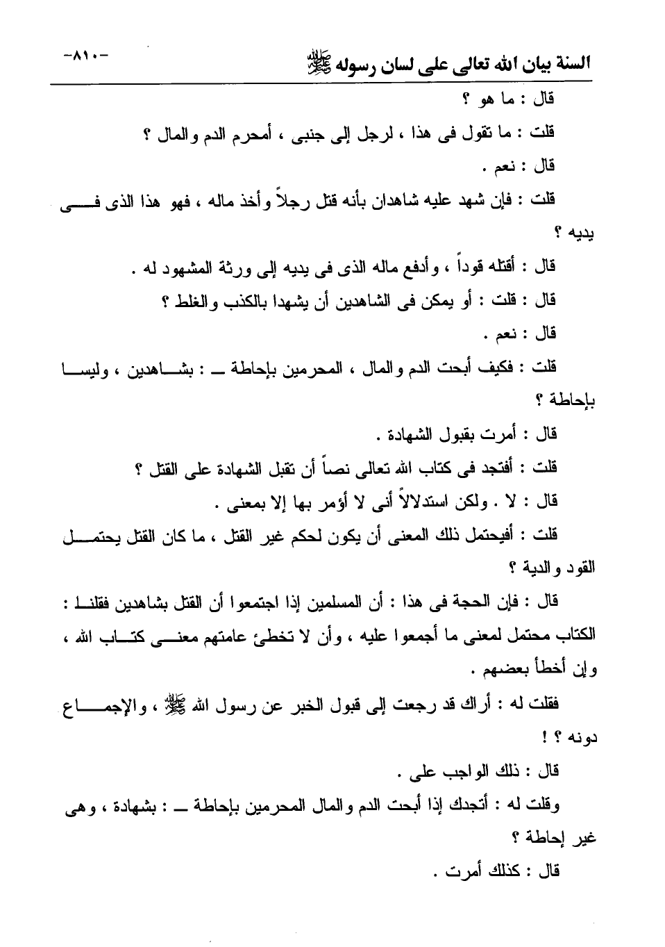 وقلت له: أتجدك إذا أبحت الدم والمال المحرمين بإحاطة ـ: بشهادة، وهى غير إحاطة؟