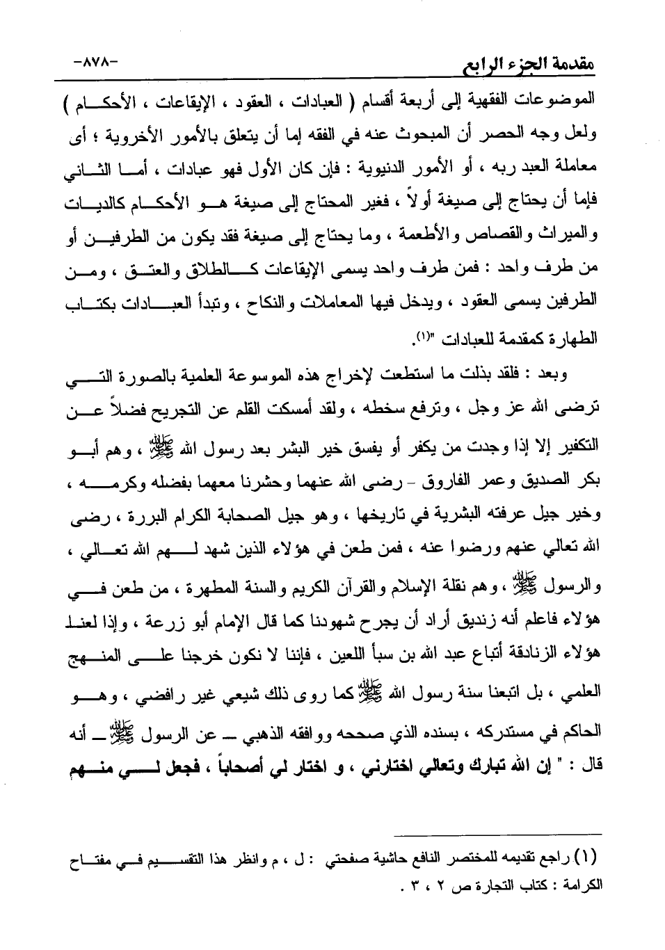 (¬1) راجع تقديمه للمختصر النافع حاشية صفحتي: ل، م وانظر هذا التقسيم في مفتاح الكرامة: كتاب التجارة ص 2، 3.