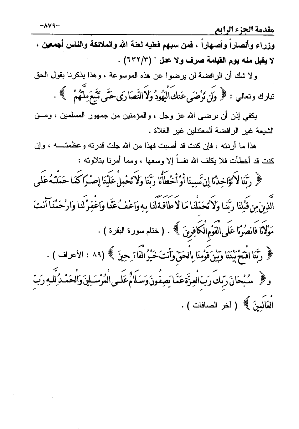 ولا شك أن الرافضة لن يرضوا عن هذه الموسوعة، وهذا يذكرنا بقول الحق تبارك وتعالي: "" وَلَن تَرضي عَنكَ الْيَهُودُ وَلاَ النَّصَارَى حَتَّى تَتَّبِعَ مِلَّتَهُمْ "".