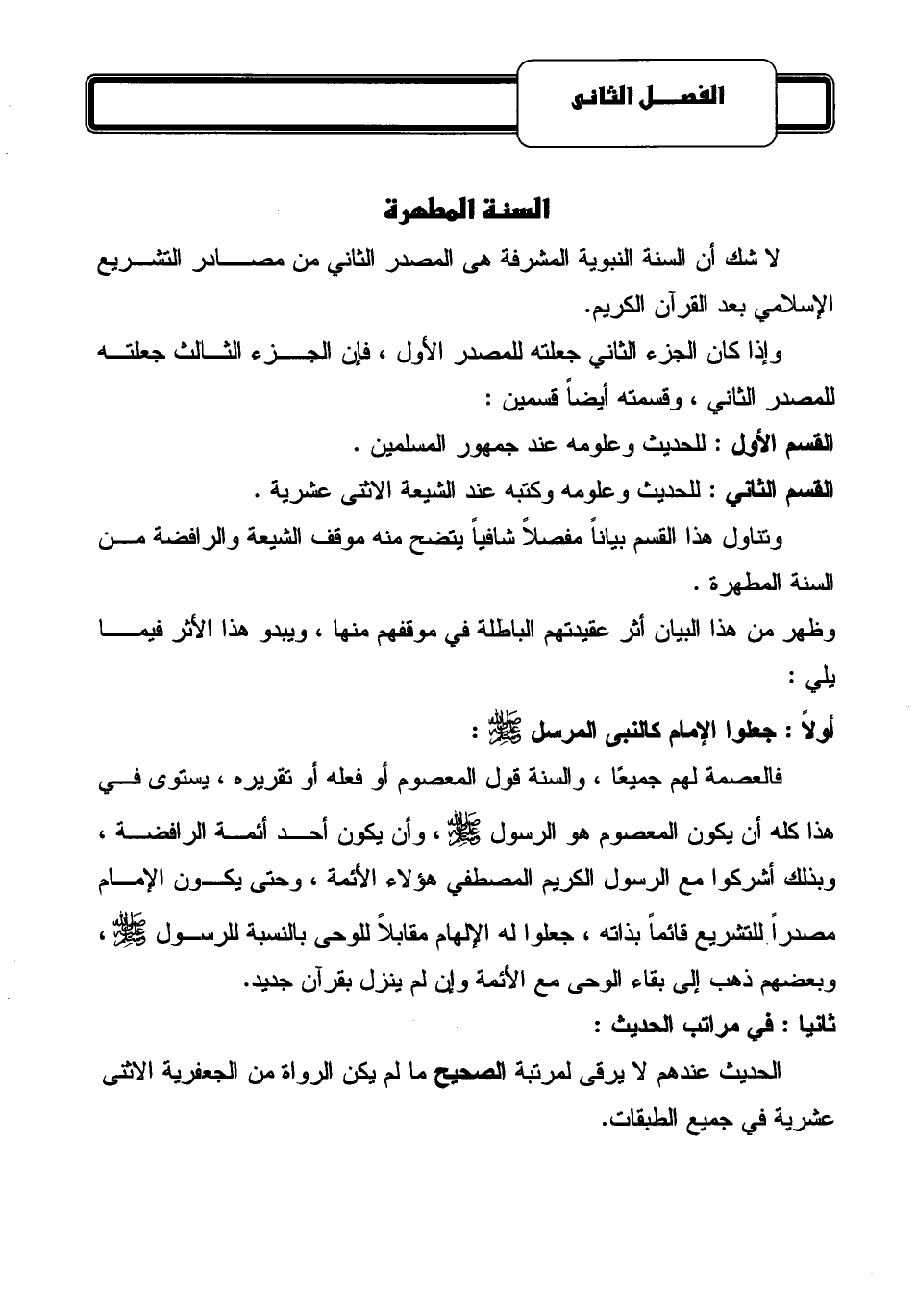 الفصل الثاني: السنة المطهرة