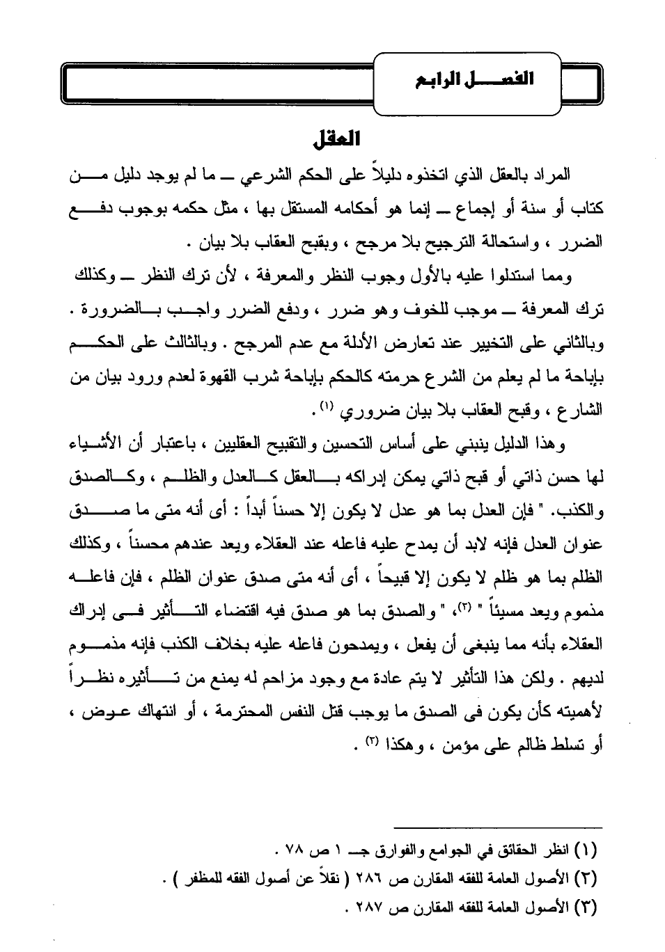 (¬2) الأصول العامة للفقه المقارن ص 286 (نقلاً عن أصول الفقه للمظفر) .