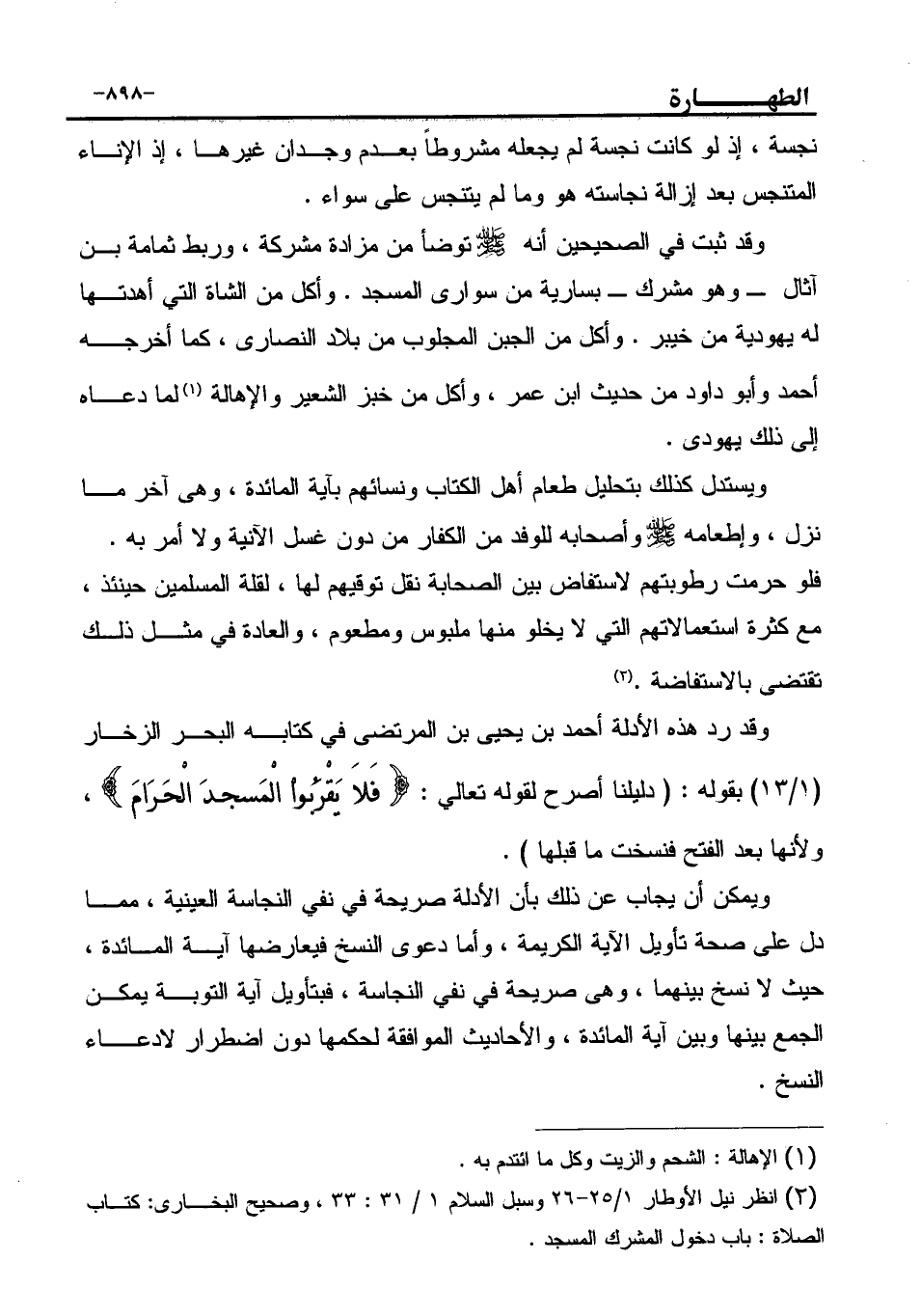 (¬2) انظر نيل الأوطار 1/25-26 وسبل السلام 1 / 31: 33، وصحيح البخارى: كتاب الصلاة: باب دخول المشرك المسجد.