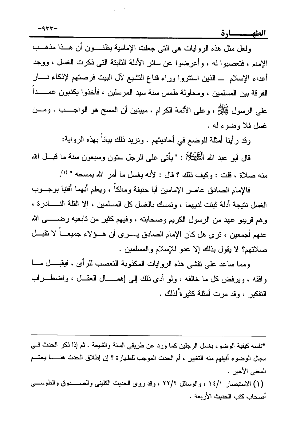 (¬1) الاستبصار 1/14، والوسائل 2/22، وقد روى الحديث الكليني والصدوق والطوسى أصحاب كتب الحديث الأربعة.