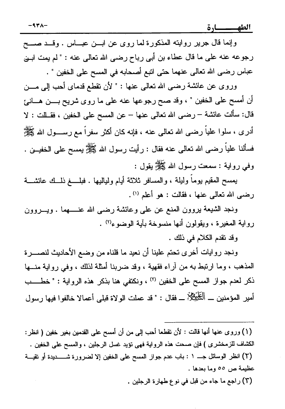 (¬2) انظر الوسائل جـ 1: باب عدم جواز المسح على الخفين إلا لضرورة شديدة أو تقية عظيمة ص 55 وما بعدها.