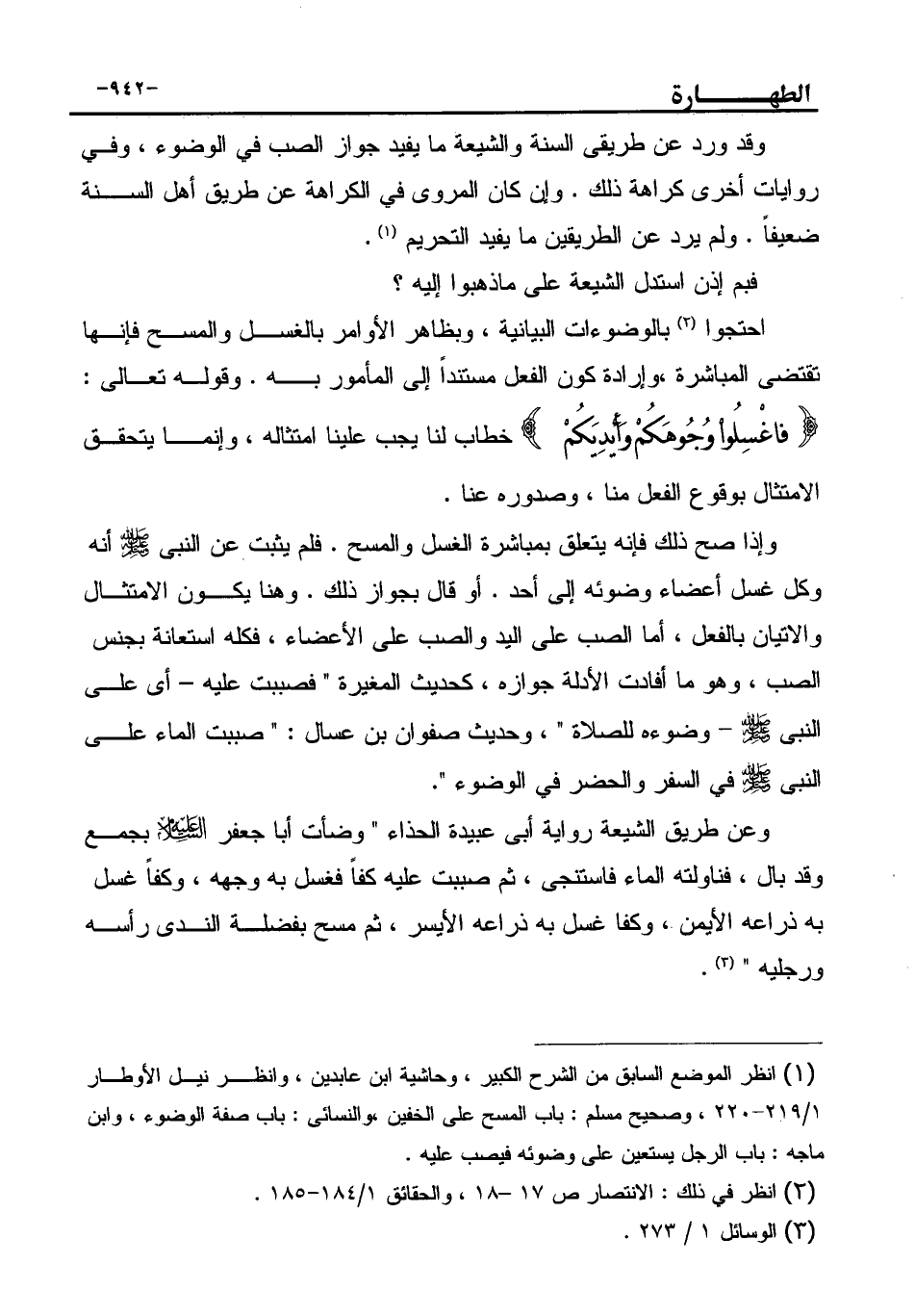 (¬1) انظر الموضع السابق من الشرح الكبير، وحاشية ابن عابدين، وانظر نيل الأوطار 1/219-220، وصحيح مسلم: باب المسح على الخفين، والنسائى: باب صفة الوضوء، وابن ماجه: باب الرجل يستعين على وضوئه فيصب عليه.