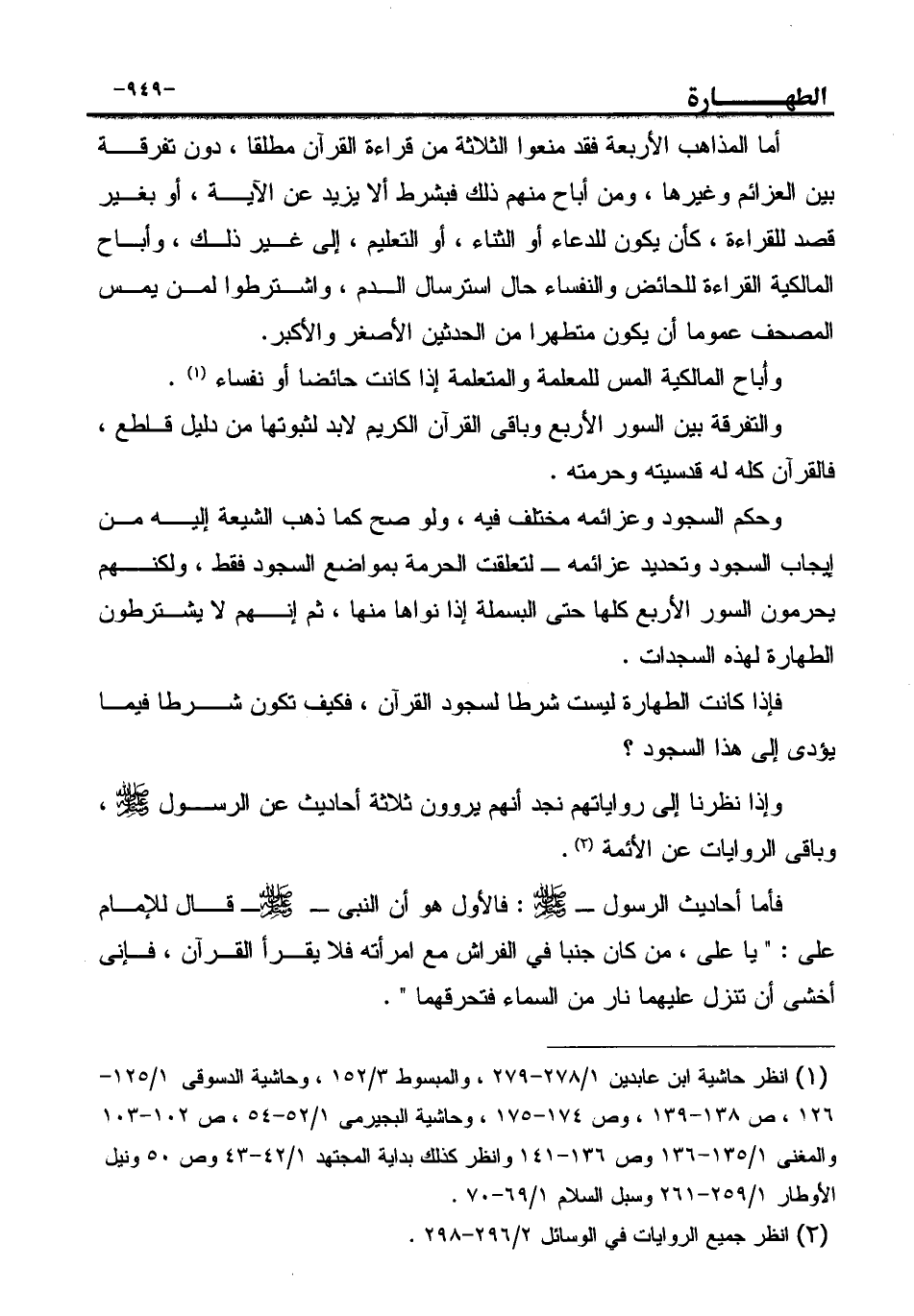 (¬1) انظر حاشية ابن عابدين 1/278-279، والمبسوط 3/152، وحاشية الدسوقى 1/125-126، ص 138-139، وص 174-175، وحاشية البجيرمى 1/52-54، ص 102-103 والمغنى 1/135-136 وص 136-141 وانظر كذلك بداية المجتهد 1/42-43 وص 50 ونيل الأوطار 1/259-261 وسبل السلام 1/69-70.