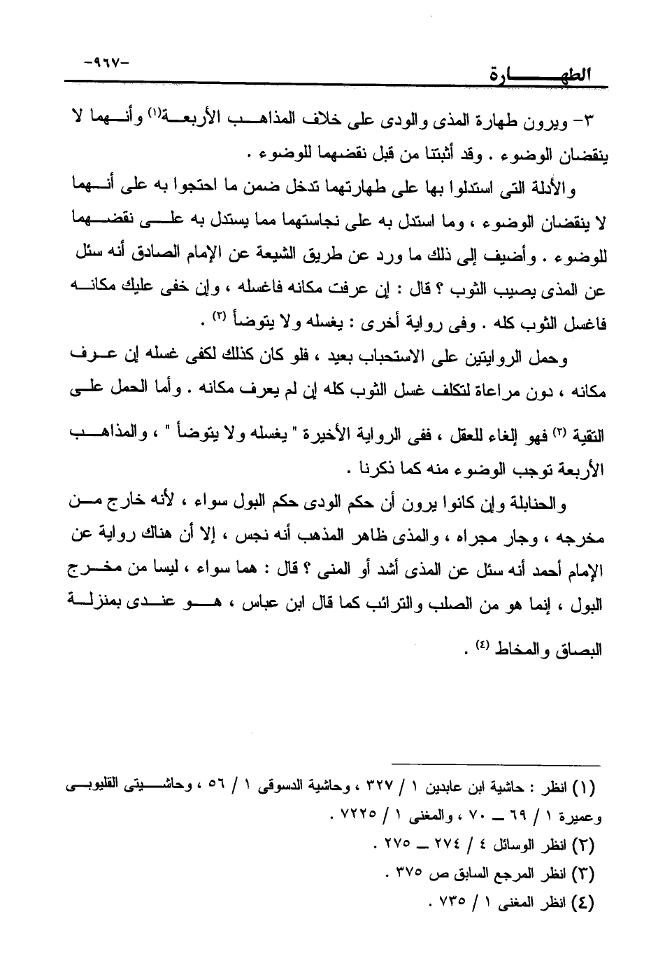 3- ويرون طهارة المذى والودى على خلاف المذاهب الأربعة (¬1) وأنهما لا ينقضان الوضوء. وقد أثبتنا من قبل نقضهما للوضوء.