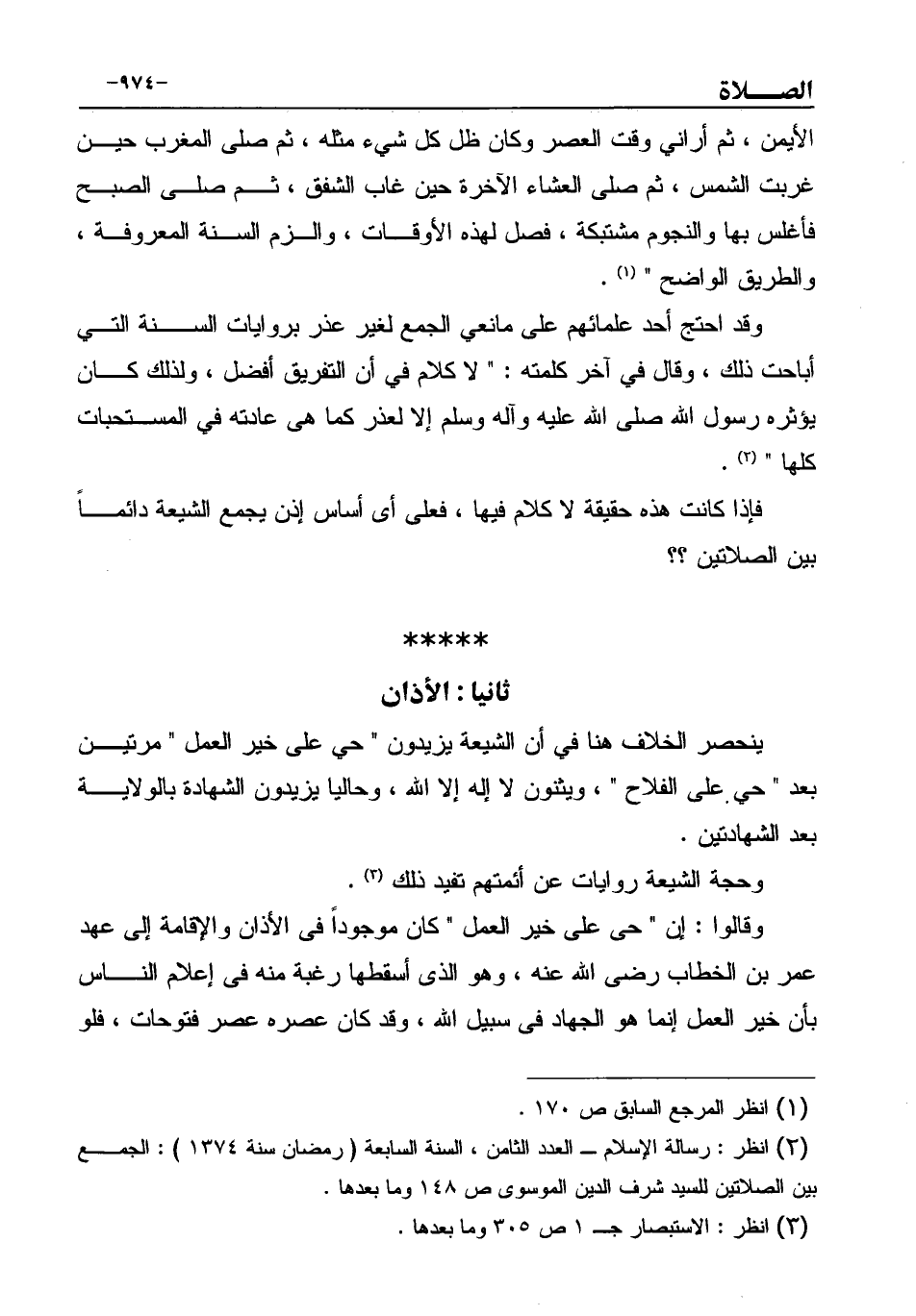 (¬2) انظر: رسالة الإسلام ـ العدد الثامن، السنة السابعة (رمضان سنة 1374) : الجمع بين الصلاتين للسيد شرف الدين الموسوى ص 148 وما بعدها.