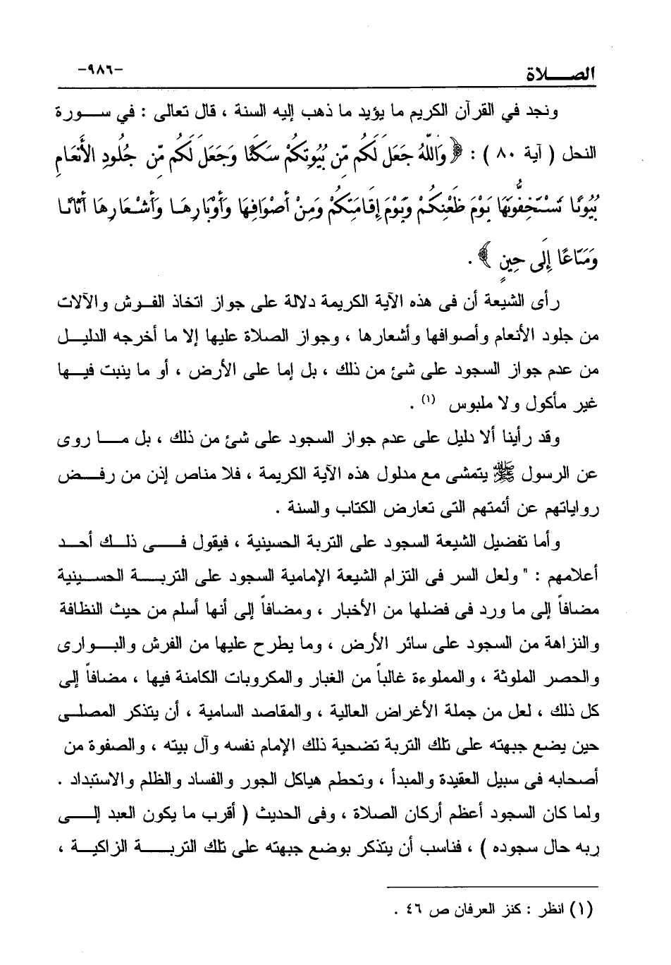 وقد رأينا ألا دليل على عدم جواز السجود على شئ من ذلك، بل ما روى عن الرسول - صَلَّى اللهُ عَلَيْهِ وَسَلَّمَ - يتمشى مع مدلول هذه الآية الكريمة، فلا مناص إذن من رفض رواياتهم عن أئمتهم التى تعارض الكتاب والسنة.