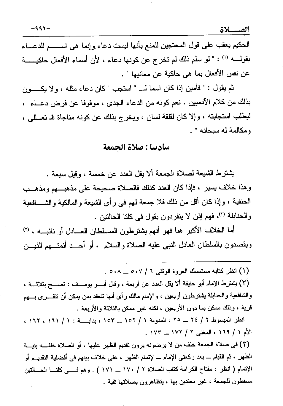 (¬3) فى صلاة الجمعة خلف من لا يرضونه يرون تقديم الظهر عليها، أو الصلاة خلفه بنية الظهر، ثم القيام ـ بعد ركعتى الإمام ـ لإتمام الظهر، على خلاف بينهم فى أفضلية التقديم أو الإتمام (انظر: مفتاح الكرامة كتاب الصلاة 2 / 170 ـ 171) . وهم فى كلتا الحالتين مسقطون للجمعة، غير معتدين بها، يتظاهرون بصلاتها تقية.