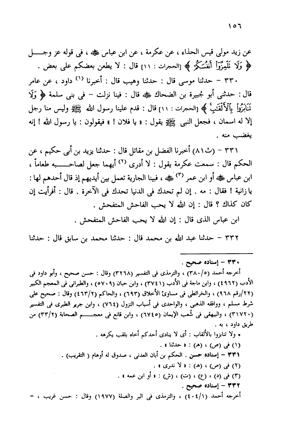 332- حَدثنا مُحَمَّدٍ، قَالَ: حَدثنا عَبْدُ اللهِ بْنُ مُحَمَّدٍ، قَالَ: حَدثنا مُحَمَّدُ بْنُ سَابِقٍ، قَالَ: حَدثنا إِسْرَائِيلُ، عَنِ الأَعْمَشِ، عَنْ إِبْرَاهِيمَ، عَنْ عَلْقَمَةَ، عَنْ عَبْدِ اللهِ، عَنِ النَّبِيِّ صَلى الله عَلَيهِ وسَلم قَالَ: لَيْسَ الْمُؤْمِنُ بِالطَّعَّانِ، وَلاَ اللِّعَانِ، وَلاَ الْفَاحِشِ، وَلاَ الْبَذِي.