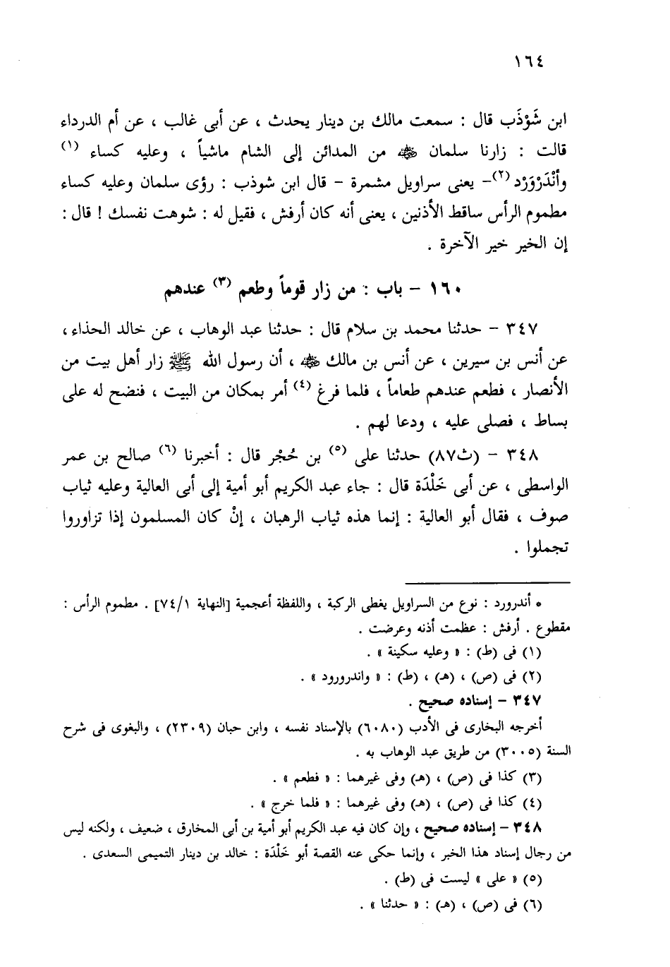 348- حَدثنا عَلِيُّ بْنُ حُجْرٍ، قَالَ: حَدثنا صَالِحُ بْنُ عُمَرَ الْوَاسِطِيُّ، عَنْ أَبِي خَلْدَةَ قَالَ: جَاءَ عَبْدُ الْكَرِيمِ أَبُو أُمَيَّةَ إِلَى أَبِي الْعَالِيَةِ، وَعَلَيْهِ ثِيَابُ صُوفٍ، فَقَالَ أَبُو الْعَالِيَةِ: إِنَّمَا هَذِهِ ثِيَابُ الرُّهْبَانِ، إِنْ كَانَ الْمُسْلِمُونَ إِذَا تَزَاوَرُوا تَجَمَّلُوا.
