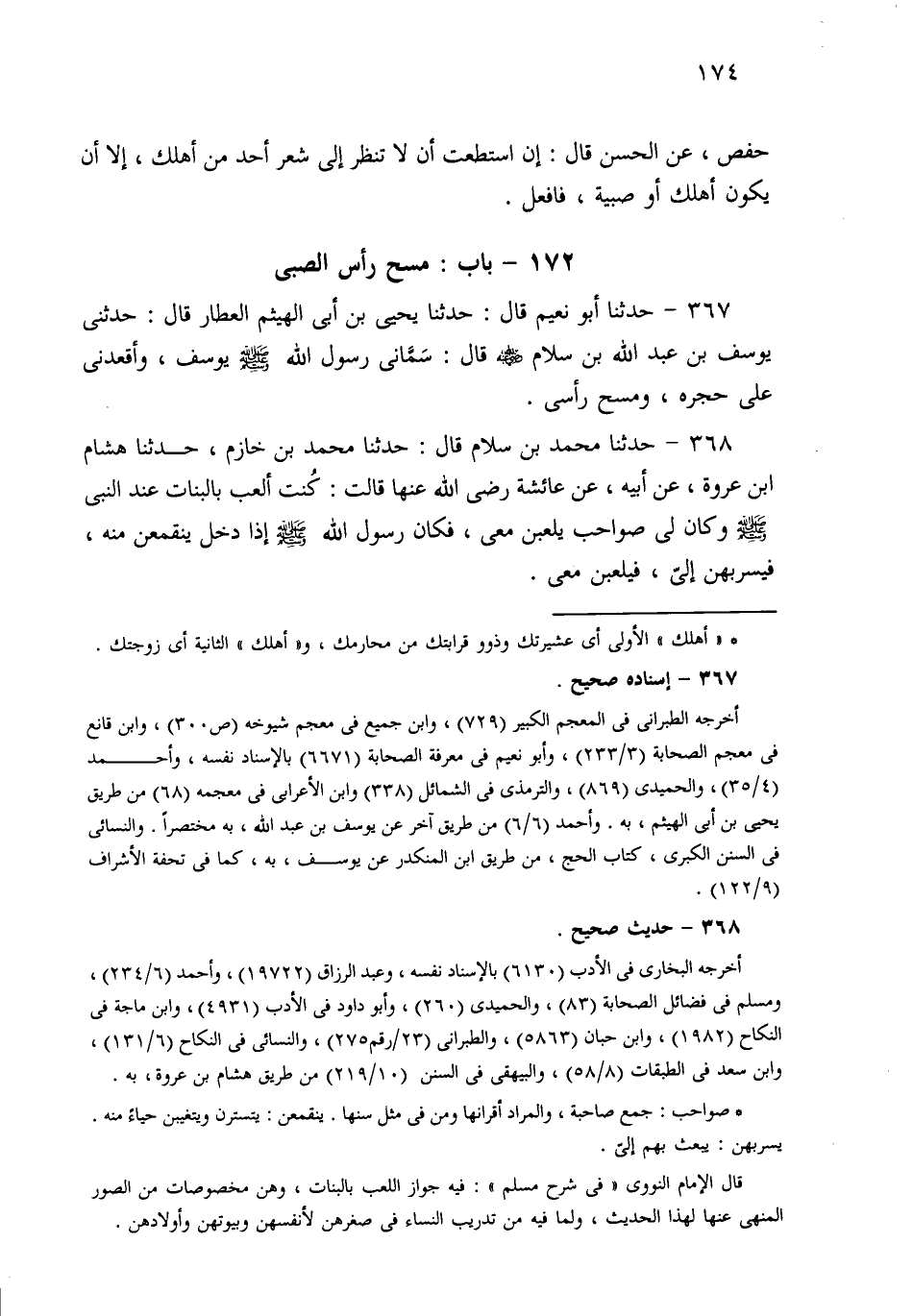 367- حَدثنا أَبُو نُعَيْمٍ، قَالَ: حَدثنا يَحْيَى بْنُ أَبِي الْهَيْثَمِ الْعَطَّارُ قَالَ: حَدَّثَنِي يُوسُفُ بْنُ عَبْدِ اللهِ بْنِ سَلاَّمٍ قَالَ: سَمَّانِي رَسُولُ اللهِ صَلى الله عَلَيهِ وسَلم يُوسُفَ، وَأَقْعَدَنِي عَلَى حِجْرِهِ، وَمَسَحَ عَلَى رَأْسِي.