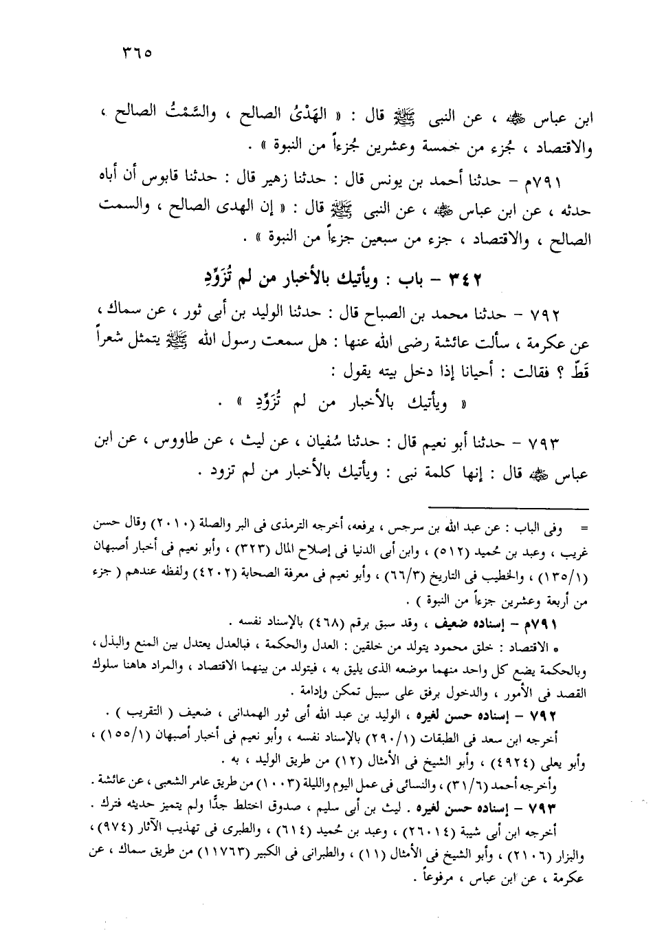 793- حَدثنا أَبُو نُعَيْمٍ، قَالَ: حَدثنا سُفْيَانُ، عَنْ لَيْثٍ، عَنْ طَاوُوسٍ، عَنِ ابْنِ عَبَّاسٍ قَالَ: إِنَّهَا كَلِمَةُ نَبِيٍّ: وَيَأْتِيكَ بِالأَخْبَارِ مَنْ لَمْ تُزَوِّدِ.