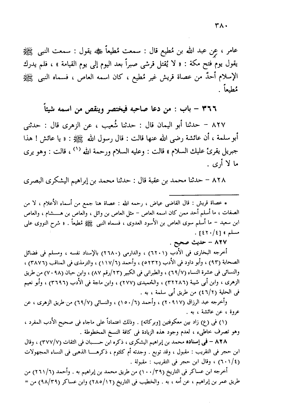 - بَابُ مَنْ دَعَا صَاحِبَهُ فَيَخْتَصِرُ وَيَنْقُصُ مِنَ اسْمِهِ شَيْئًا