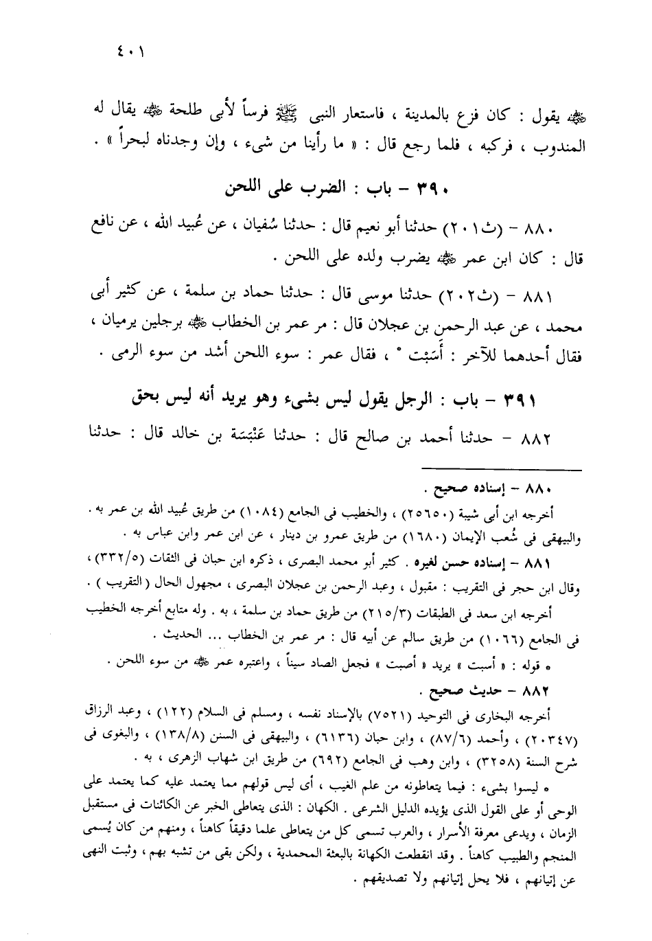 880- حَدثنا أَبُو نُعَيْمٍ، قَالَ: حَدثنا سُفْيَانُ، عَنْ عُبَيْدِ اللهِ، عَنْ نَافِعٍ قَالَ: كَانَ ابْنُ عُمَرَ يَضْرِبُ وَلَدَهُ عَلَى اللَّحْنِ.
