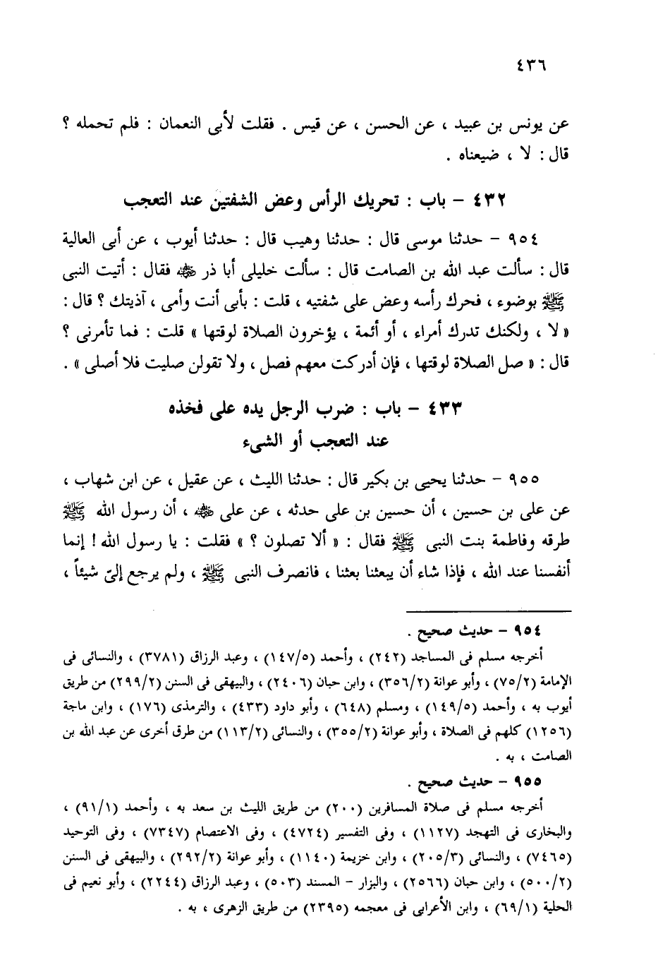 - بَابُ ضَرْبِ الرَّجُلِ يَدَهُ عَلَى فَخِذِهِ عِنْدَ التَّعَجُّبِ أَوِ الشَّيْءِ